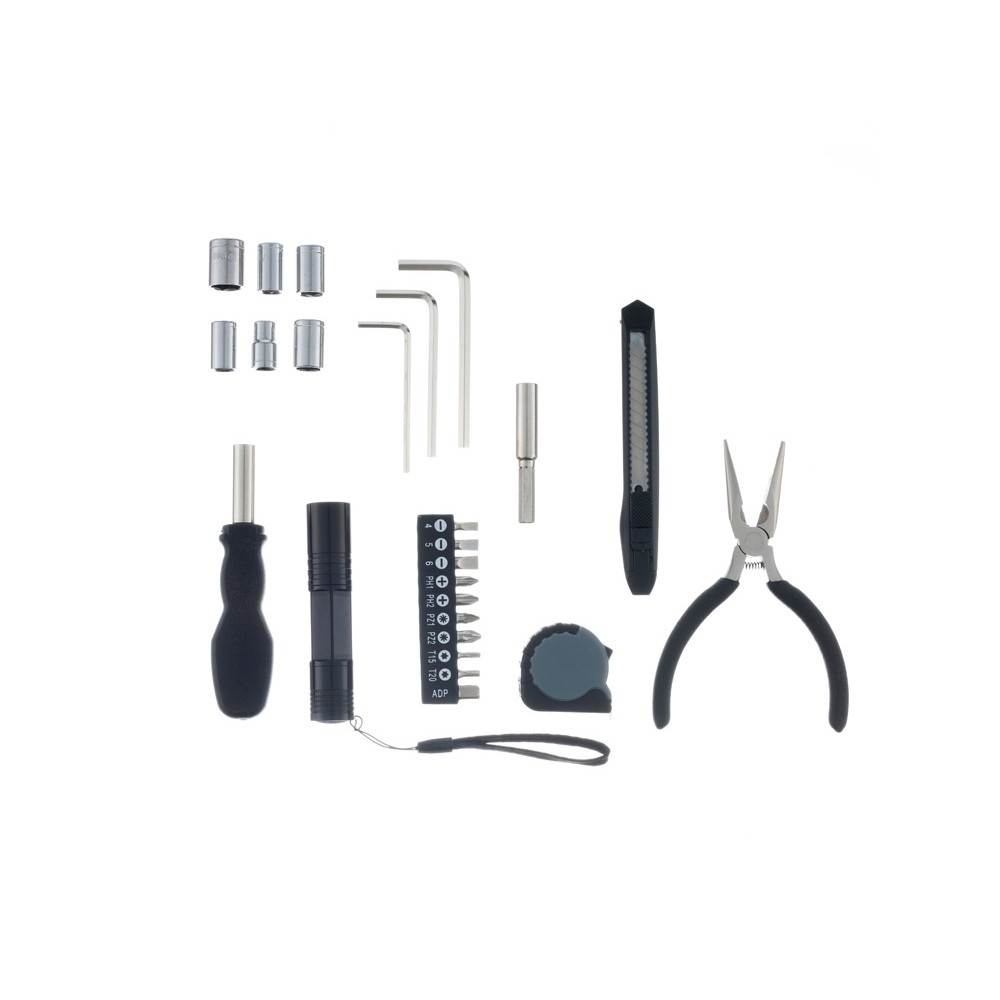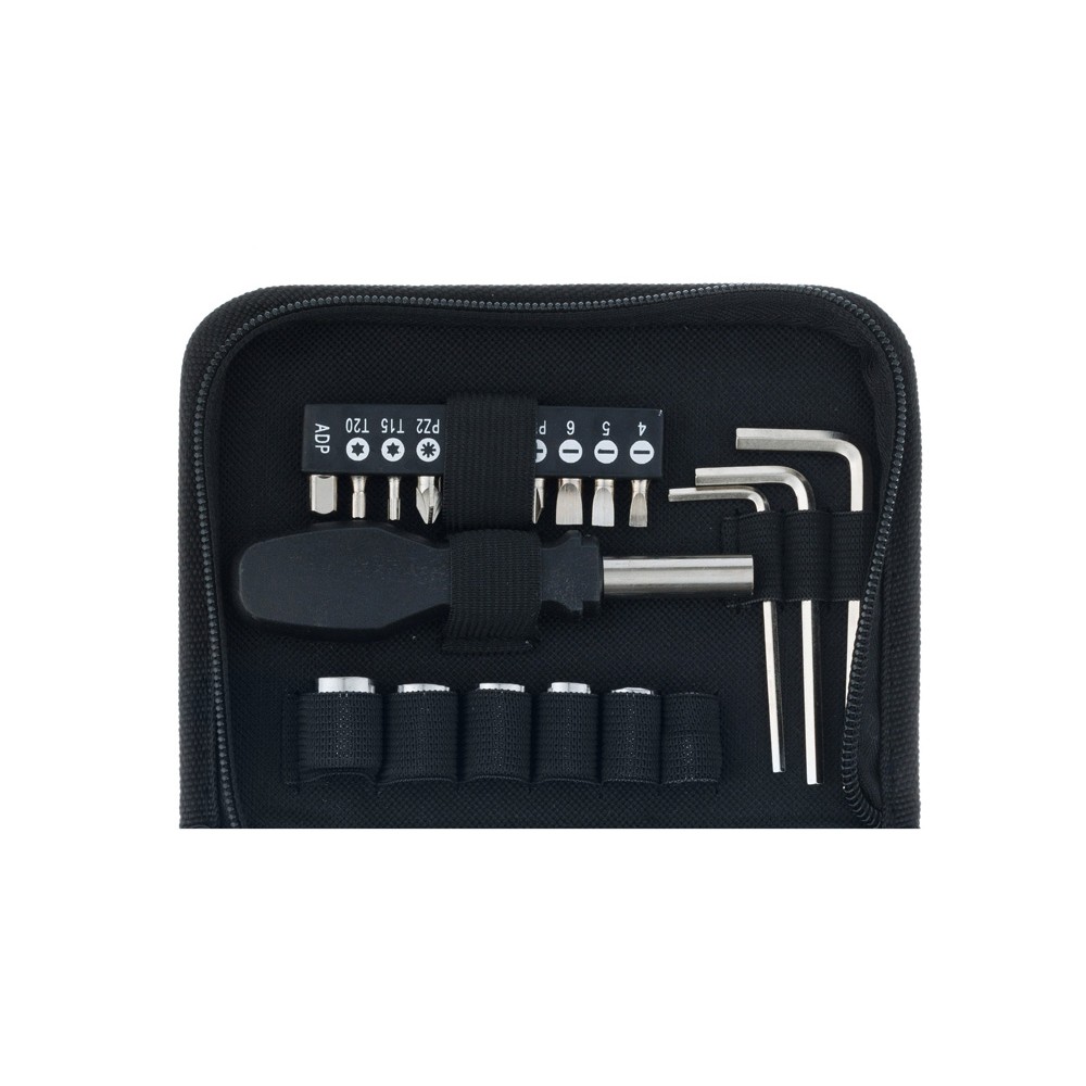 Набор инструментов STINGER W0109 на 25 предметов придётся по вкусу всем тем, кто привык всё делать своими руками. С таким комплектом можно без труда произвести практически любой мелкий бытовой ремонт. Все предметы надёжно закреплены в прочном нейлоновом чехле. Этот компактный набор можно хранить в тумбочке, на полке, в шкафу или бардачке машины. Стальные рабочие части инструментов отличаются повышенной прочностью, рукоятки выполнены из износостойкого карбона. Для удобства чехол дополнен матерчатой ручкой для переноски.