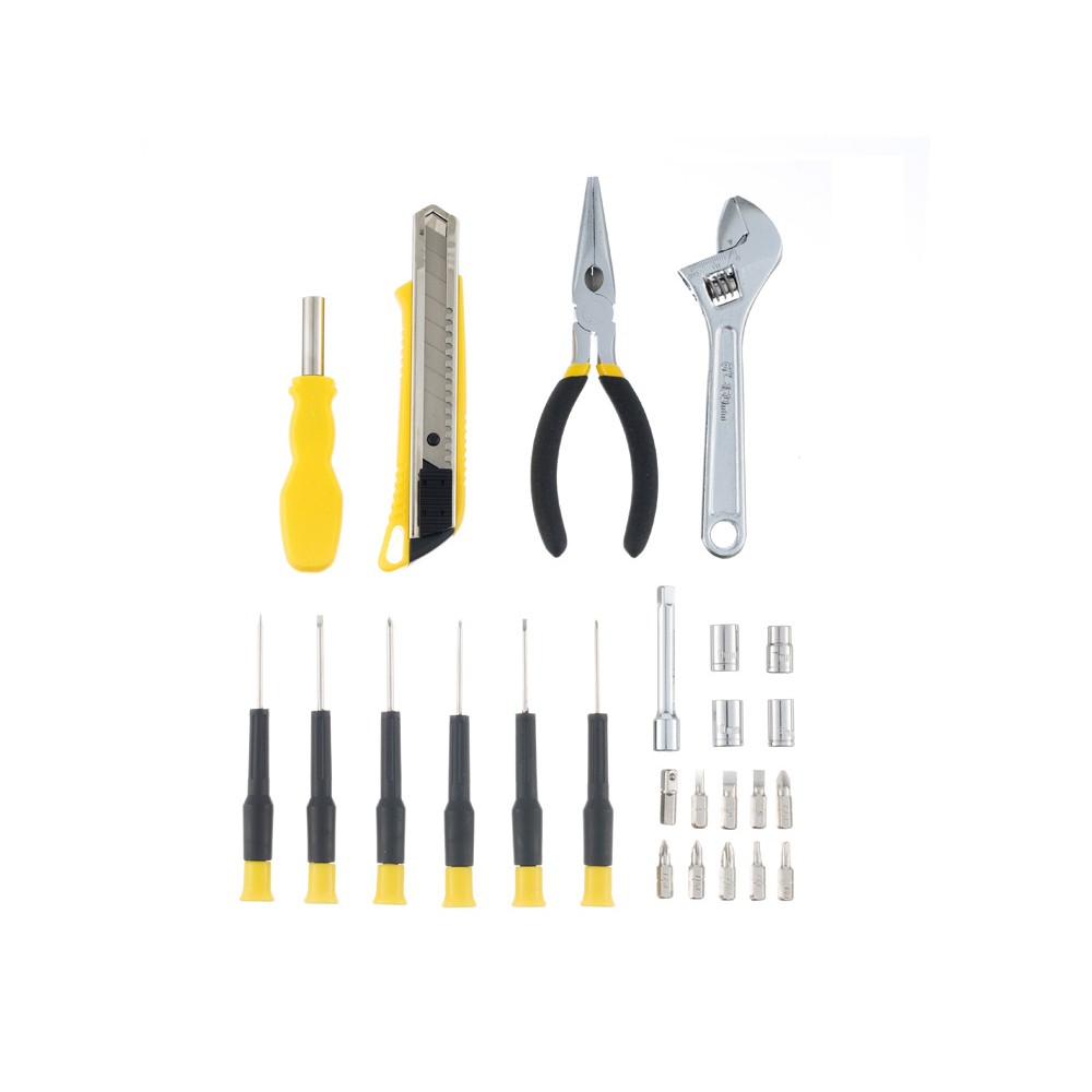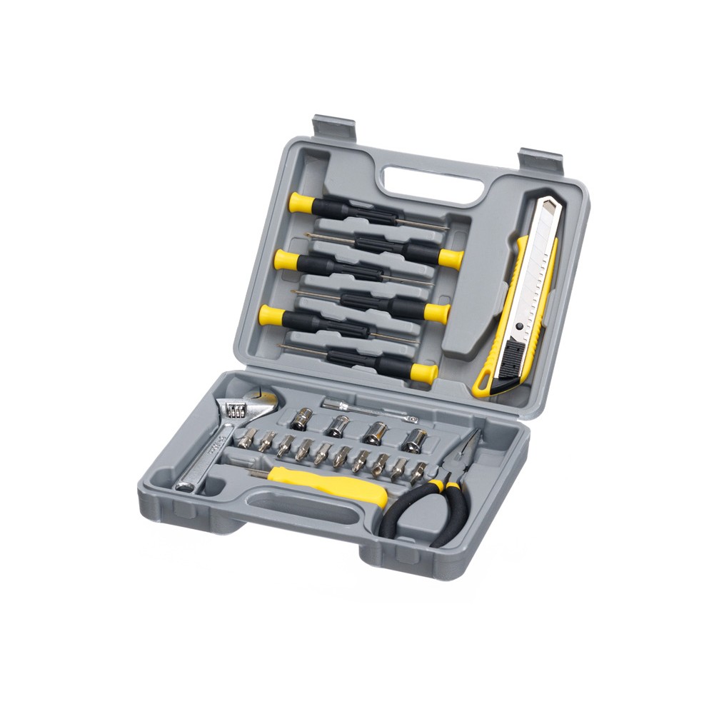 Набор инструментов на 25 предметов STINGER W0402 поможет справиться с широким спектром хозяйственно-бытовых задач. Все инструменты изготовлены из высококачественной закаленной углеродистой стали с хромированным покрытием и прочного углепластика (карбона). Набор включает в себя все основные инструменты, необходимые при проведении мелкого ремонта, починки бытовой техники или сборки мебели.