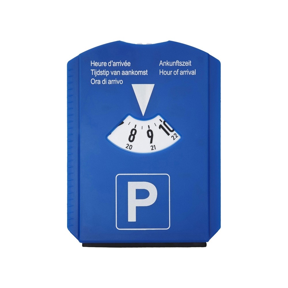 Парковочный диск 5 в 1. Парковочный диск со скребком, резиновым дворником, держателем монет и измерителем протектора. Большая поверхность для нанесения лого. Текст "Время приезда" на голландском, английском, французском,немецком и итальянском языках.