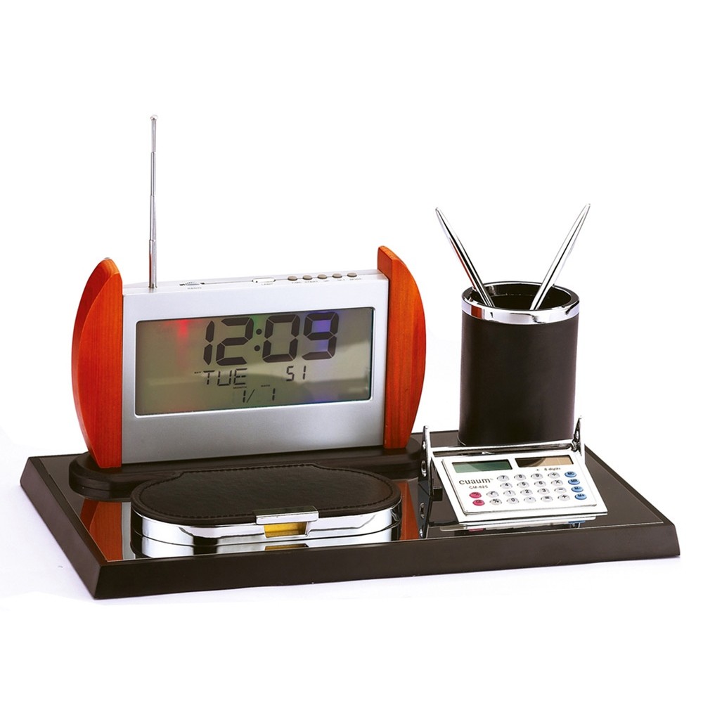 Настольный прибор "Монреаль": часы, радио, калькулятор, подставка под ручки, бумажный блок