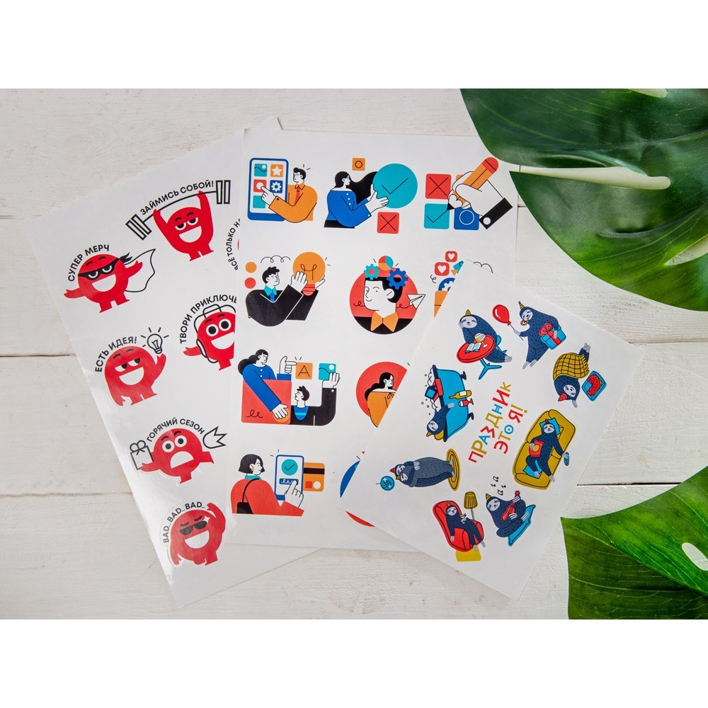 Лист с наклейками формата А4, которые можно использовать для украшения ноутбуков, планшетов, телефонов, дневников, скетчбуков и многого другого.