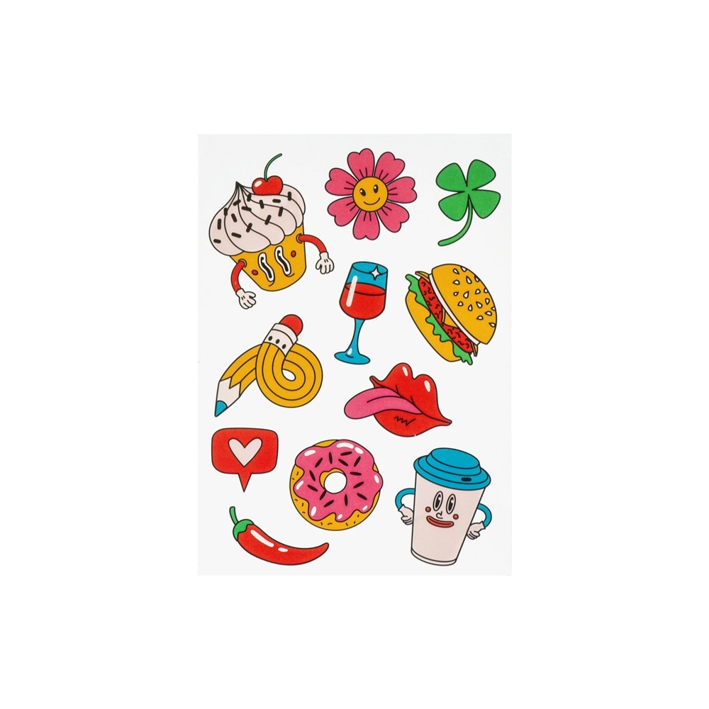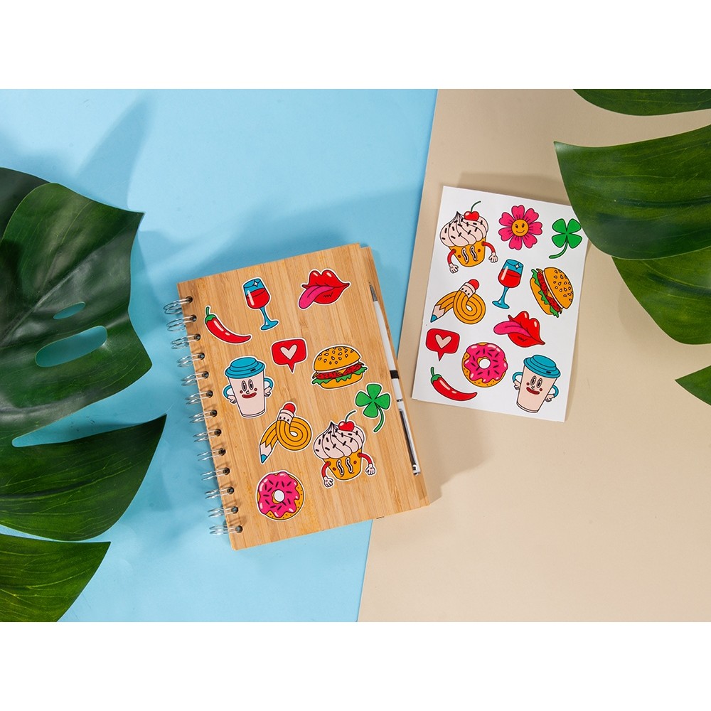 Лист с наклейками формата А6, которые можно использовать для украшения ноутбуков, планшетов, телефонов, дневников, скетчбуков и многого другого.