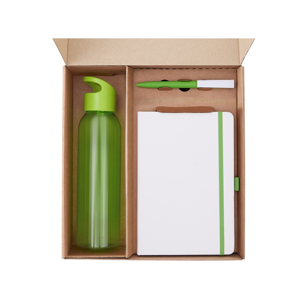 • Подарочный набор с бутылкой для воды. блокнотом, ручкой и ланчбоксом, зеленое яблоко