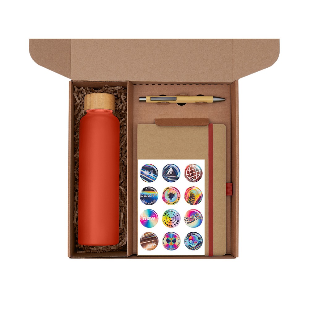 • Подарочный набор с бутылкой для воды. блокнотом, ручкой и подставкой для телефона, красный