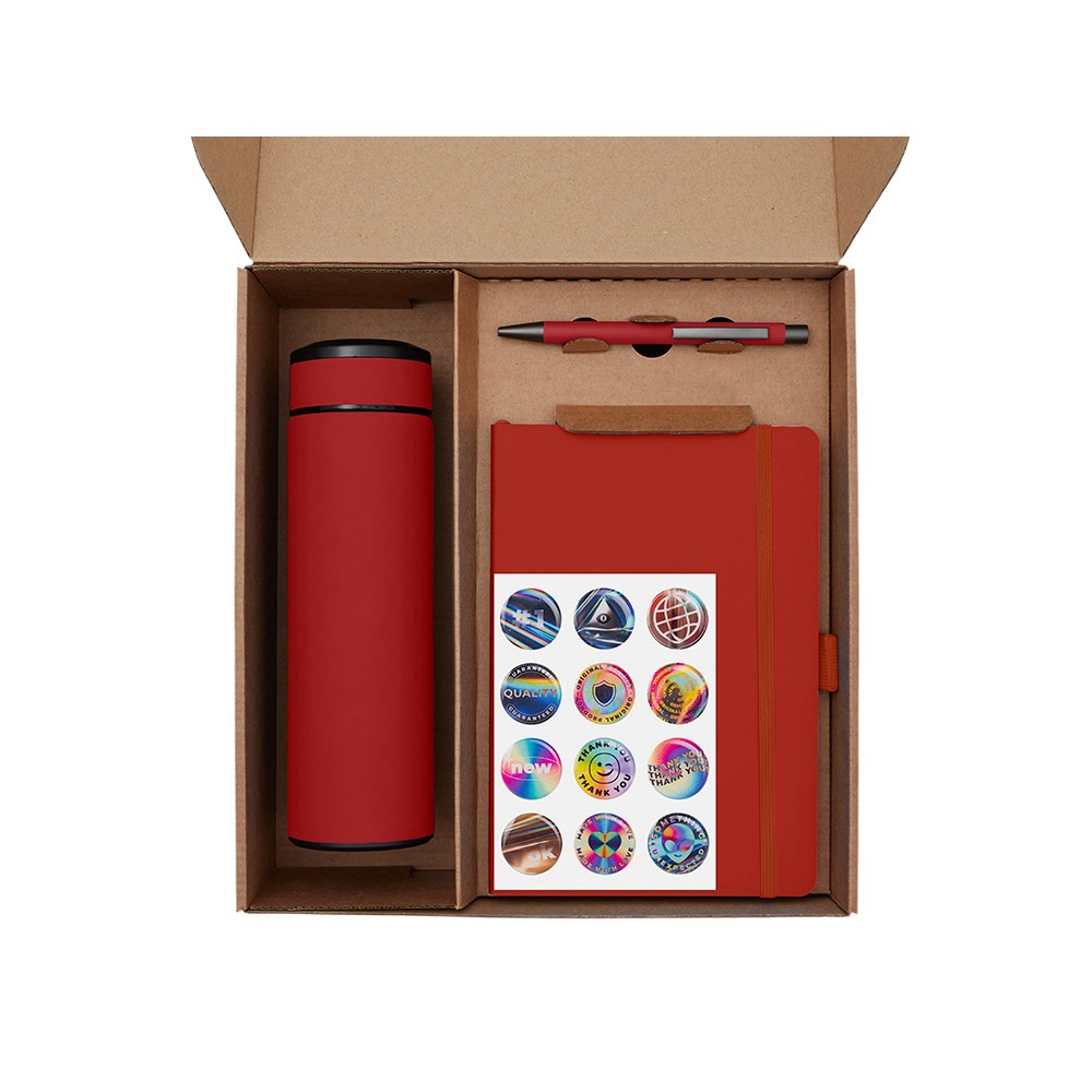 | Материал товара | термос - нержавеющая cталь с покрытием софт-тач, блокнот - искусственная кожа с покрытием софт-тач, ручка - металл с покрытием софт-тач, чай - крафт-пакет, стикеры - смола, держатель для телефона - пластик, коробка - картон |