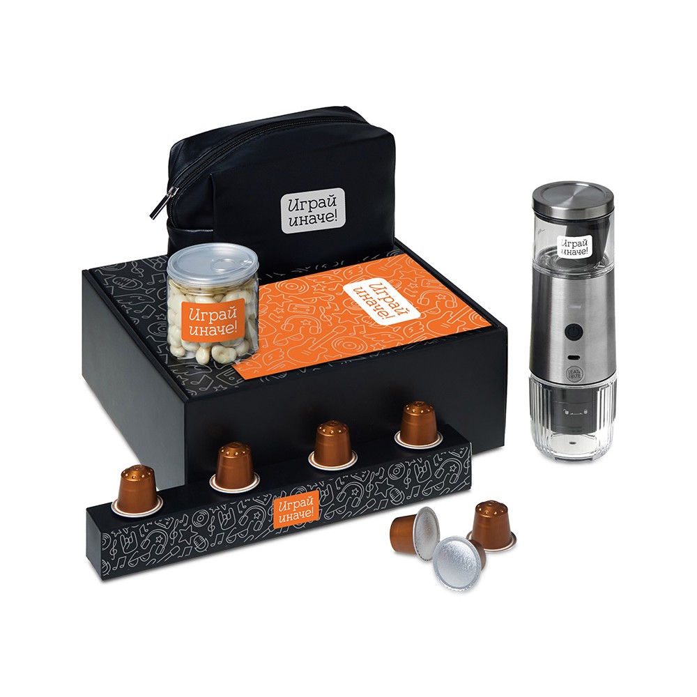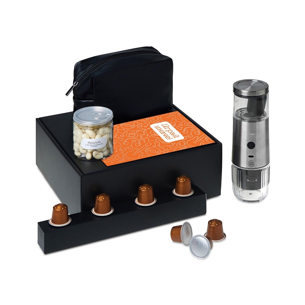 Набор "Re:y. Boost" о бодрости, энергии и маленьких ритуалах, которые можно взять с собой. Портативная кофемашина и кофе в капсулах позволяют приготовить ароматный напиток дома, в офисе или на прогулке. Кешью в глазури добавляет сладкую нотку, а косметичка позволяет взять любимые вещи с собой, куда бы вы ни отправились.. Этот набор превращает привычный утренний ритуал в момент бодрости и комфорта, где бы вы ни были.