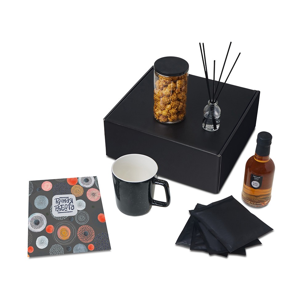 Материал товара диффузор - стекло, кофе в дрип пакете - пластик, кружка - костяной фарфор, попкорн - пластик, металл, мешок - нетканый материал (спанбонд), коробка - картон