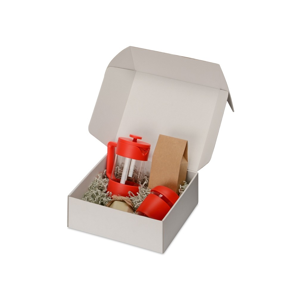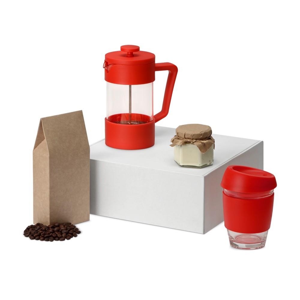 • Подарочный набор с кофе, кружкой и френч-прессом "Бодрое утро", красный