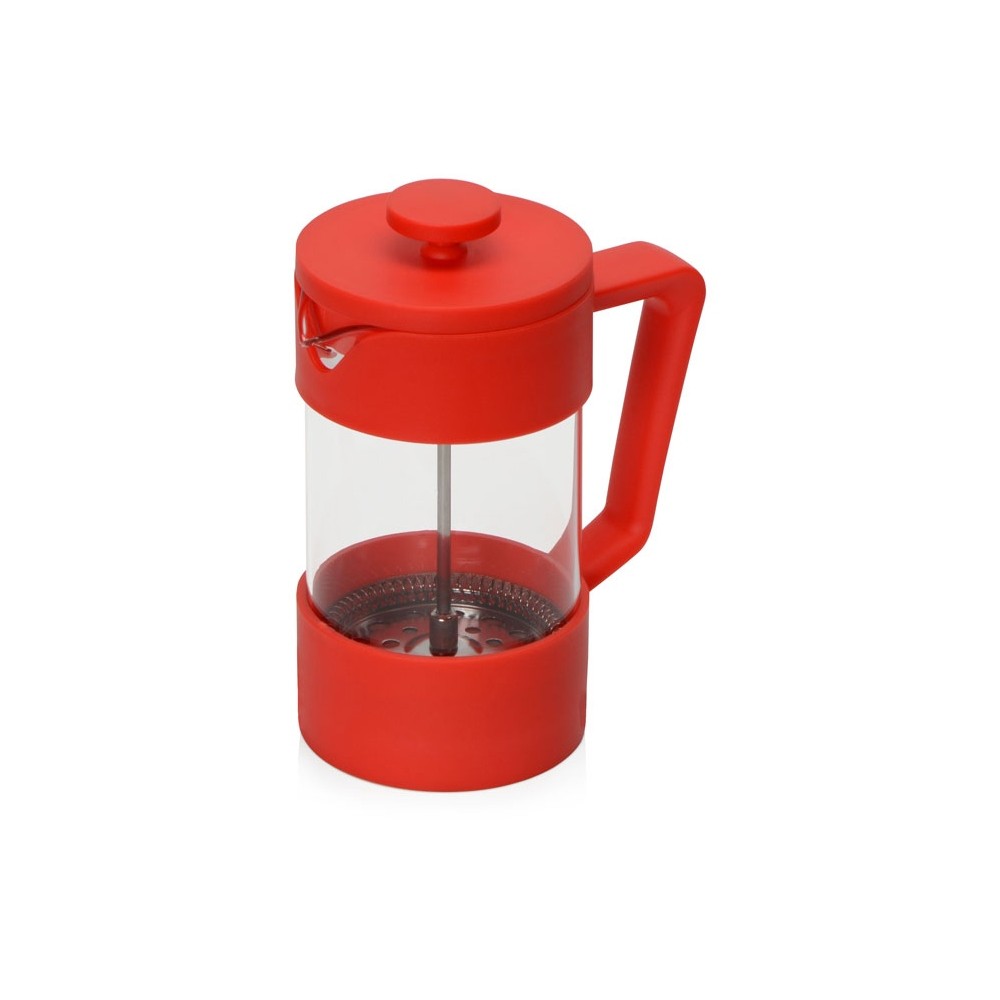 Цвет товара френч-пресс- прозрачный/красный, стеклянный стакан- прозрачный/красный, упаковка кофе- крафт, бумажный наполнитель- серый