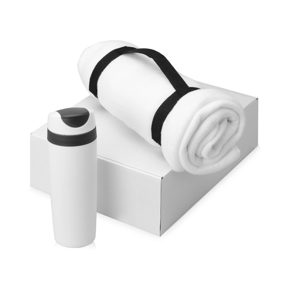 Подарочный набор Cozy с пледом и термокружкой, белый