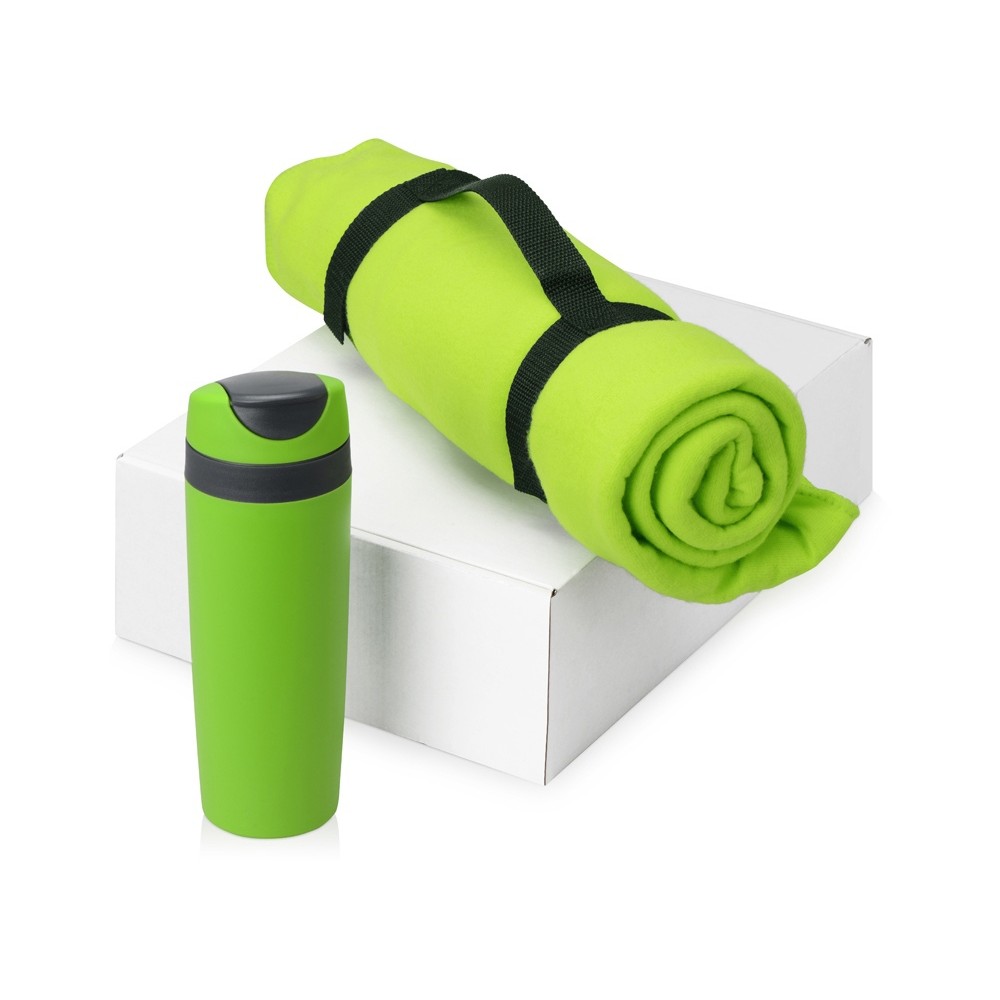 Подарочный набор Cozy с пледом и термокружкой, зеленый