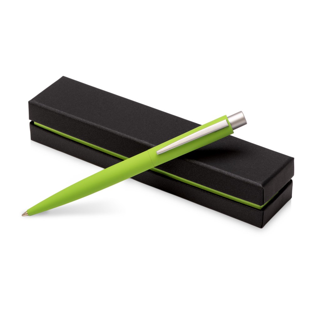 Металлическая шариковая ручка с матовым цветным прорезиненным корпусом. Металлический клип и кнопка в серебристом матовом цвете. Поставляется в красивом черном футляре, внутренний цвет которого идеально сочетается с цветом самой ручки.