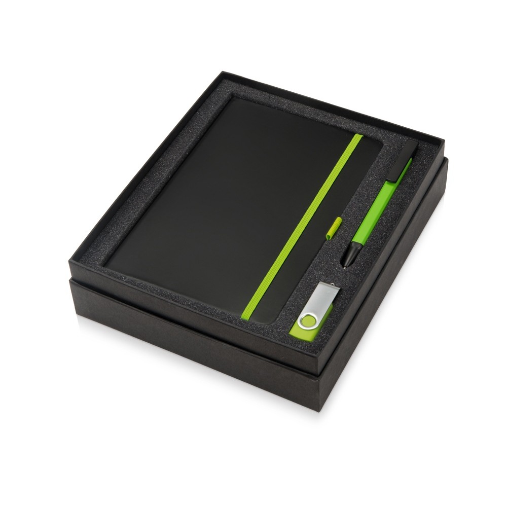 Технические характеристики Подарочный набор Q-edge с флешкой, ручкой-подставкой и блокнотом А5, зеленый