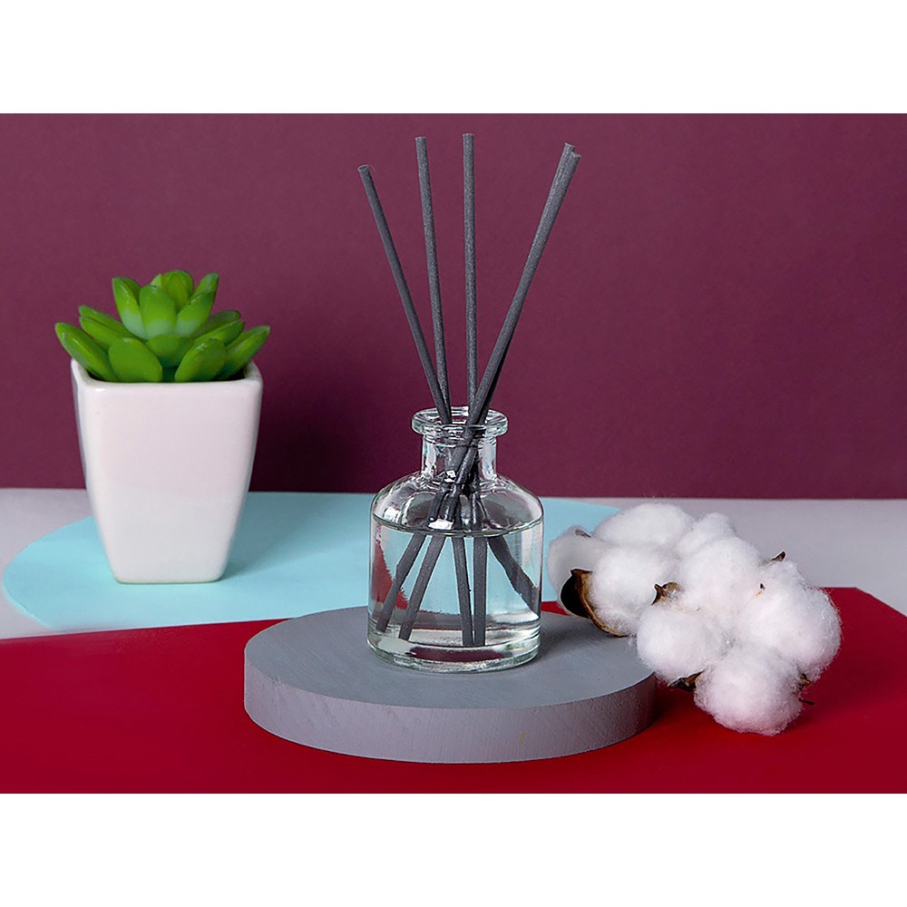 Объём диффузора 50 мл. Его будет достаточно для умеренного поддержания аромата в комнате до 15м2 в течение двух месяцев использования. Насыщенность аромата регулируется количеством используемых фибровых палочек.
