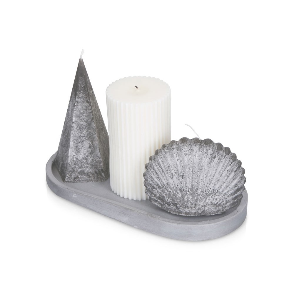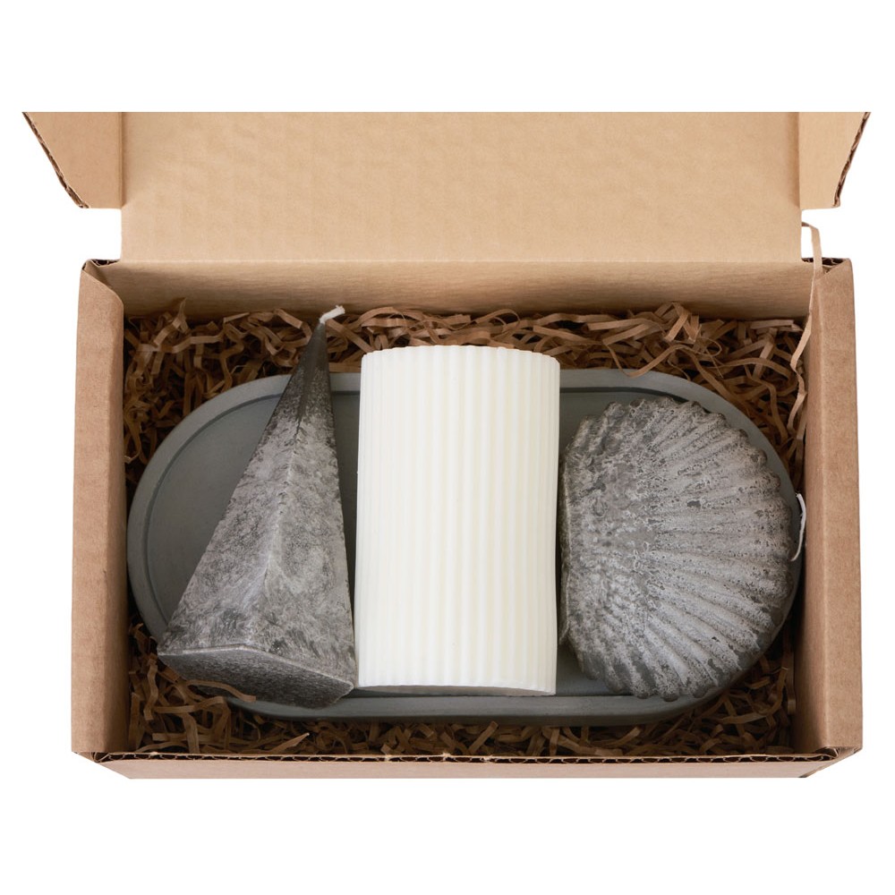 Комплектность свеча столбик, свеча пирамида, свеча ракушка, подставка гипсобетон, упаковочный материал