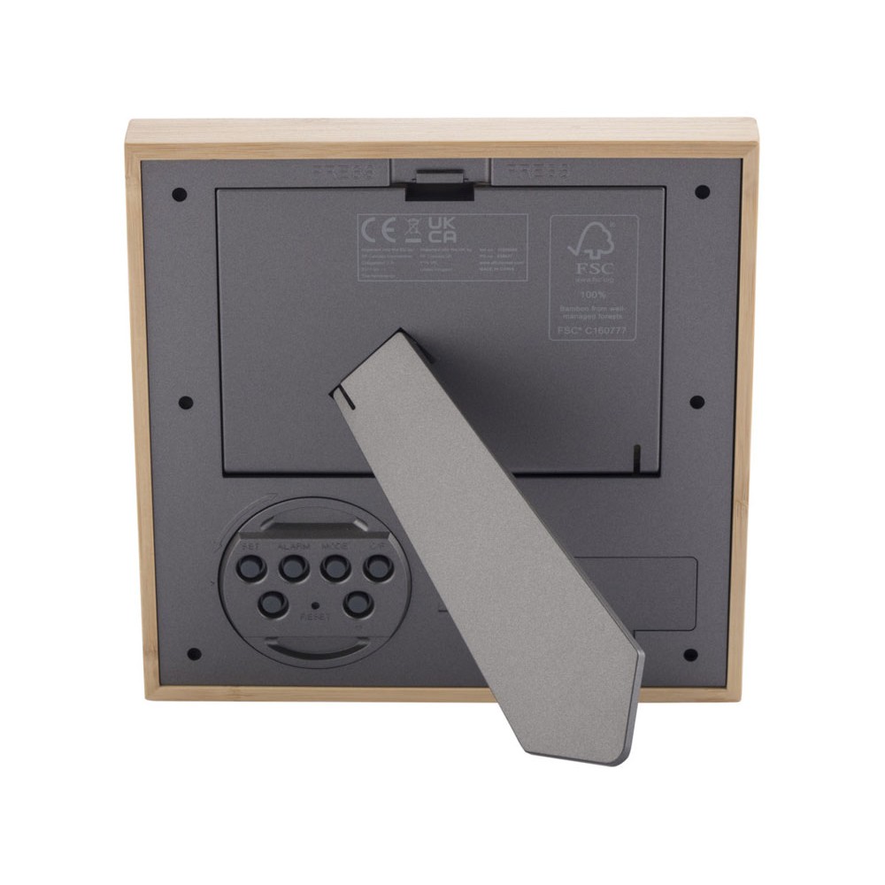 Бамбуковая фоторамка Sasa с метеостанцией является стильным и функциональным дополнением вашего дома или офиса. Основной корпус изготовлен из бамбука, полученного из ответственных источников, а задний корпус из переработанной пластмассы, что придает фоторамке естественной элегантности и обеспечивает экологичность. Силиконовые кнопки обеспечивают удобный и отзывчивый опыт взаимодействия, а ЖК-стекло гарантирует четкость изображения. Фоторамка также предлагает ряд полезных функций. В обычном режиме фоторамка отображает время, месяц, дату, день недели и температуру. Она также имеет функцию будильника/повторного сигнала, чтобы помочь вам начать свой день вовремя. Режим напоминания о дне рождения позволяет следить за важными датами, а режим таймера идеально подходит для расписания задач или мероприятий. Кроме того, режим оценки музыки предлагает до 7 песен на выбор для вашего удовольствия. Включает 2 батарейки типа АА. Поставляется с коробкой из крафт-бумаги и инструкцией по эксплуатации.