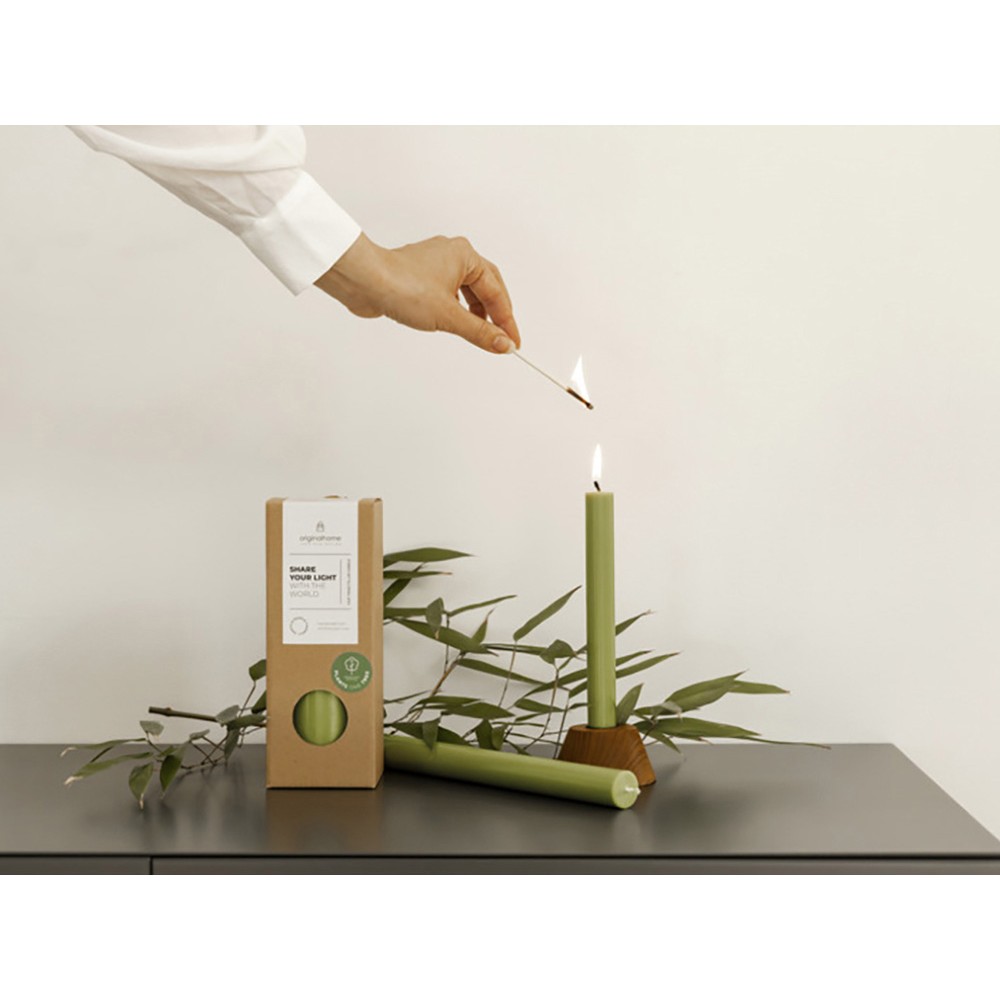Столовая свеча от Originalhome на 100% натуральная и изготовлена вручную из сертифицированного пальмового воска. В комплект входят 10 свечей без запаха, упакованных в подарочную коробку. Каждая свеча горит примерно 7-8 часов.