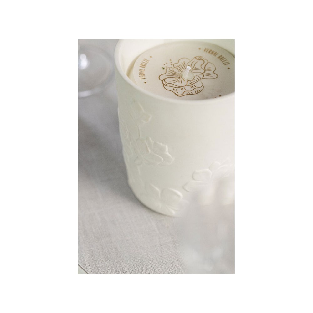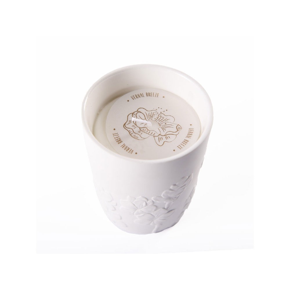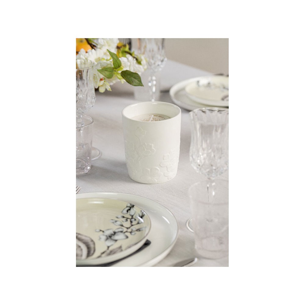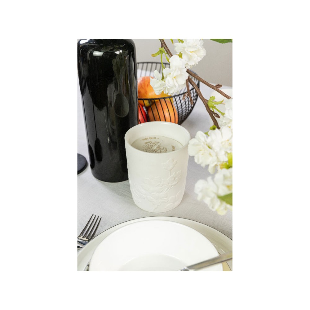 Ароматическая свеча с цветочным ароматом в фарфоровом кашпо от Valerie Concept. Кашпо выполнено из высокотемпературного прочного фарфора, украшено объёмным цветочным барельефом. Свеча из натурального соевого воска с хлопковым фитилем, подарит вам долгие часы наслаждения и умиротворения, благодаря нежному аромату с нотками чарующих цветов и хлопка.
