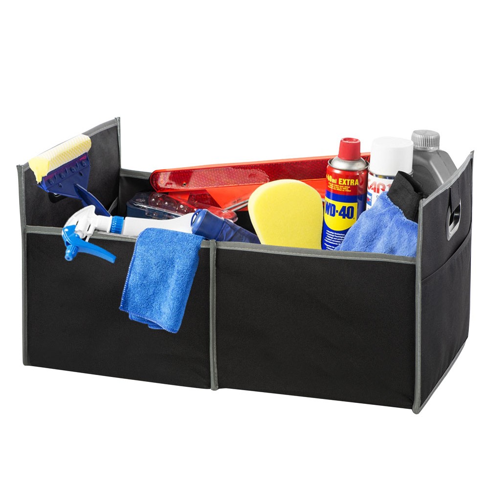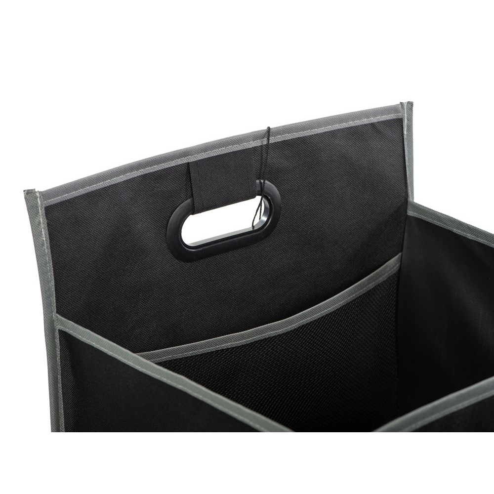 Органайзер для багажника помогает содержать в чистоте автомобиль и аккуратно складывается для хранения во время его неиспользования. Имеет два наружных кармана для дополнительных вещей и два внутренних отделения. Ручки с мягкими подкладками для удобной переноски.