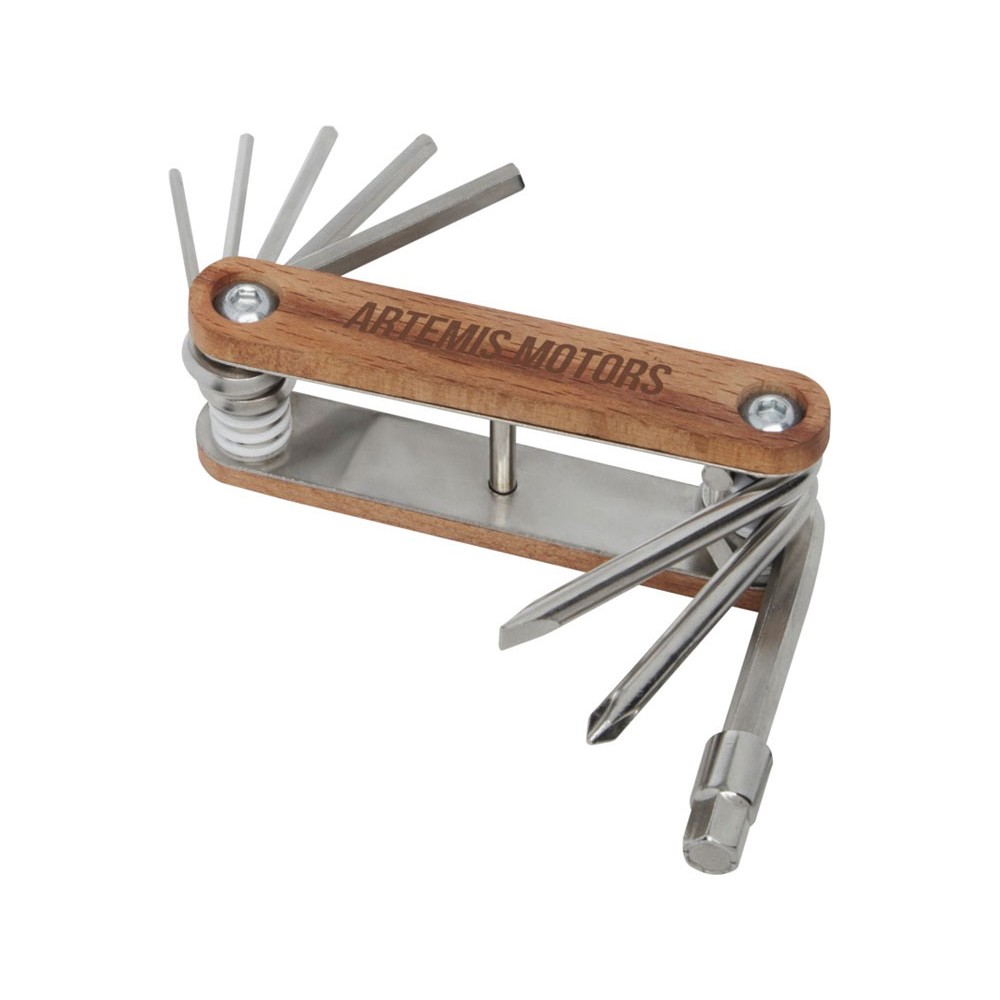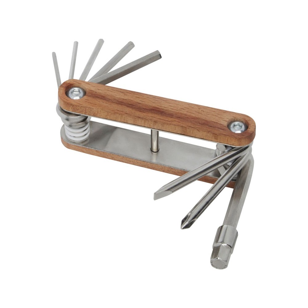 Прочный и долговечный компактный многофункциональный инструмент для велосипедов из высококачественной нержавеющей стали с ручками из буковой древесины. Это обязательный инструмент для каждого любителя велосипедов на случаи непредвиденного ремонта. Имеет 8 необходимых инструментов для велосипедов: шестигранный ключ (2 мм/2,5 мм/3 мм/4 мм/5 мм/5,5 мм/6 мм), крестообразная и плоская отвертки. Используемая буковая древесина поступает от надежных поставщиков, соблюдающих все экологические и социальные нормы. Размер в открытом состоянии 19,5 x 3,6 см, а в закрытом — 9,6 x 3,6 см. Поставляется с инструкцией по эксплуатации и упакован в подарочную коробку из переработанного картона размером 12 x 4,5 x 4 см.