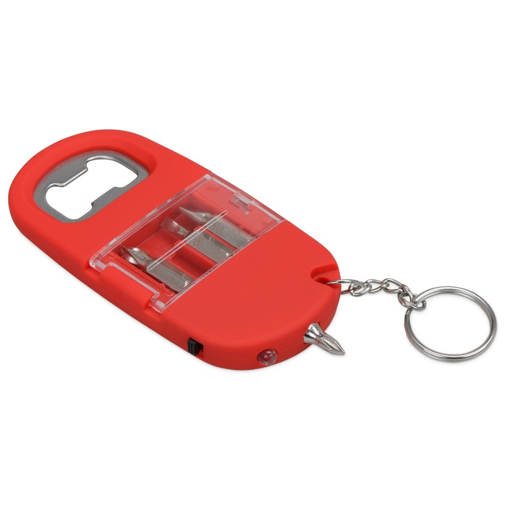 • Брелок-открывалка с отвертками и фонариком "Uni", софт-тач, красный