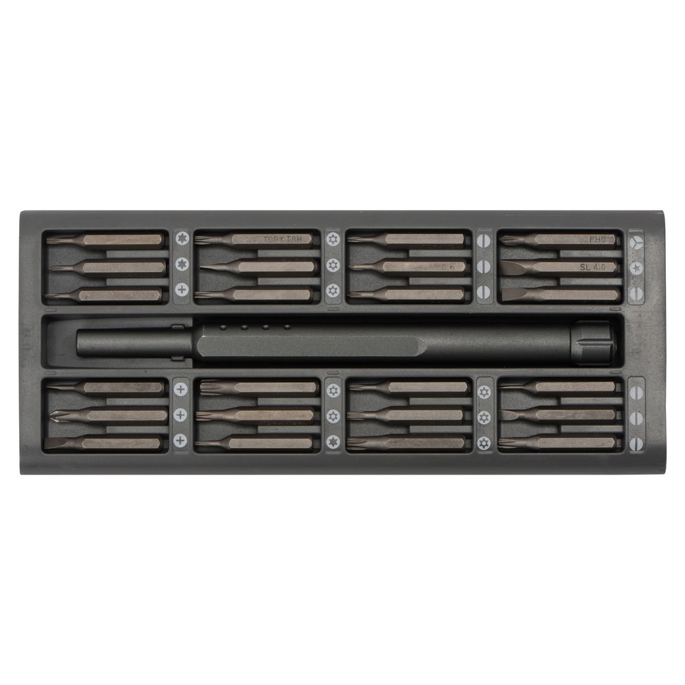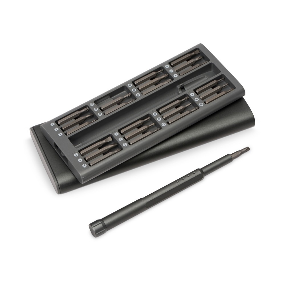 Набор из 24 насадок в металлическом кейсе. Насадки изготовлены из долговечной стали S2, твердость HRC 58-6. Включает наиболее распространенные и востребованные комплектующие для ремонта мобильных телефонов, планшетов, ноутбуков, игровых приставок и других электронных устройств.