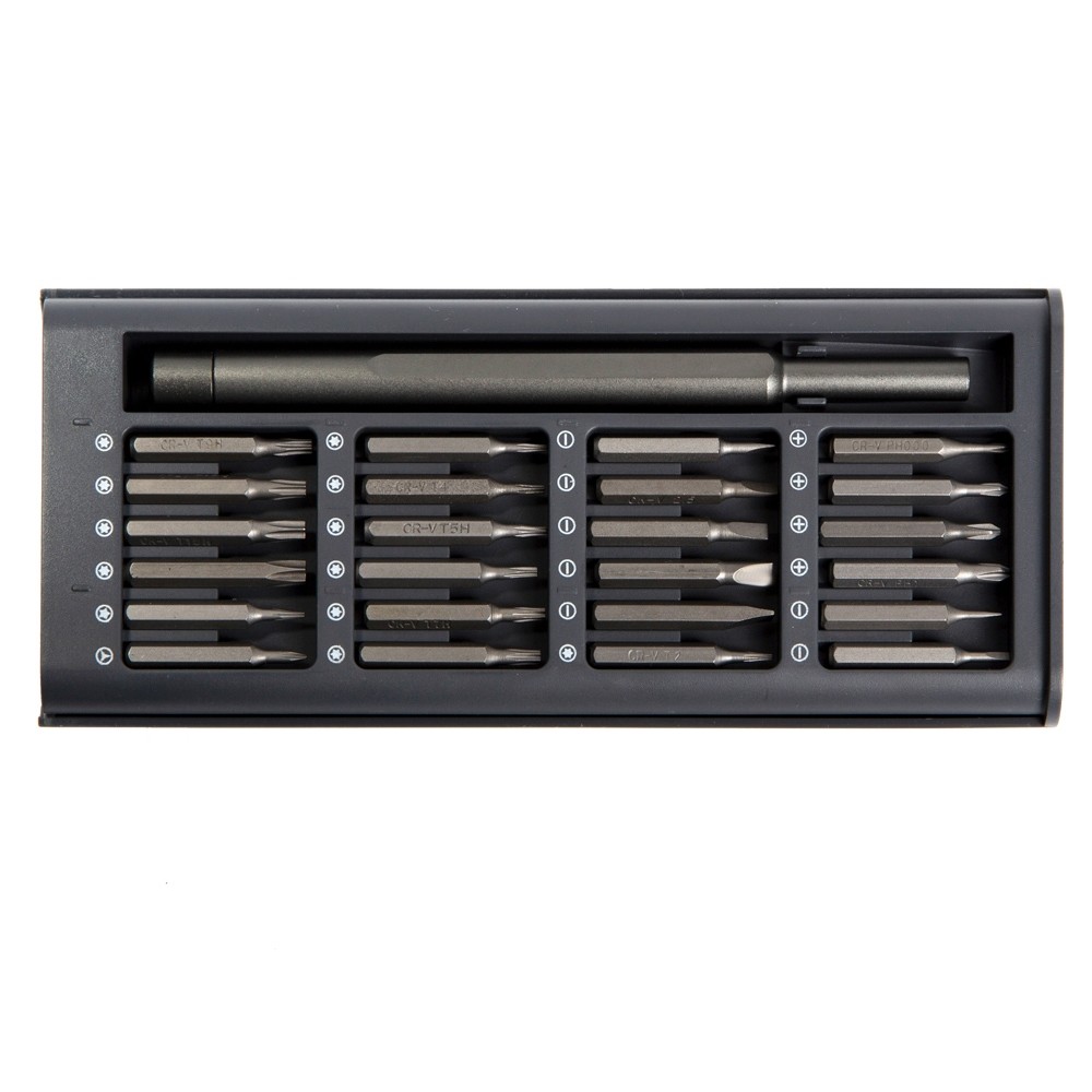 Everybit Lite — это набор отверток 24-в-1, изготовленный из прочной стали CRV и включающий в себя необходимые детали для ремонта смартфонов, планшетов, ПК и игровых консолей. В комплекте с анодированным, противоскользящим и вращающимся колпачком входят долота из закаленной стали с прорезями, крестообразные, шестигранные, Torx, пятилопастные и трехлопастные. Подходит для ремонтных работ с iPhone, iPad, MacBook Air и MacBook Pro, а также Nintendo, PlayStation и XBox. Кейс выполнен из пластика.