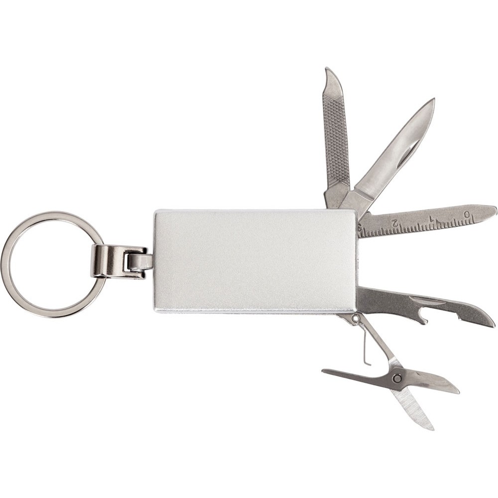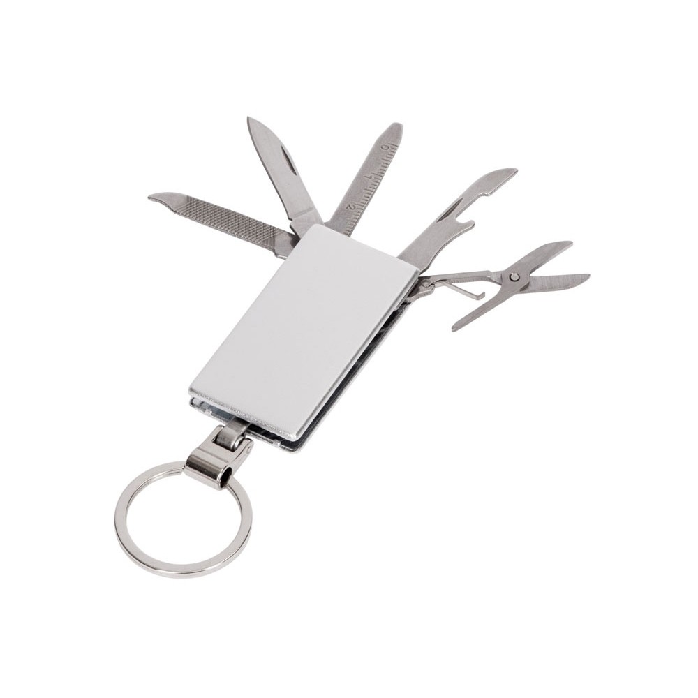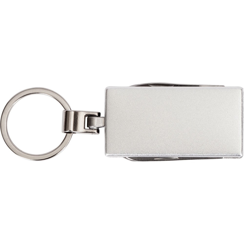 Брелок-мультитул на кольце в металлическом корпусе с заметным полем под нанесение.