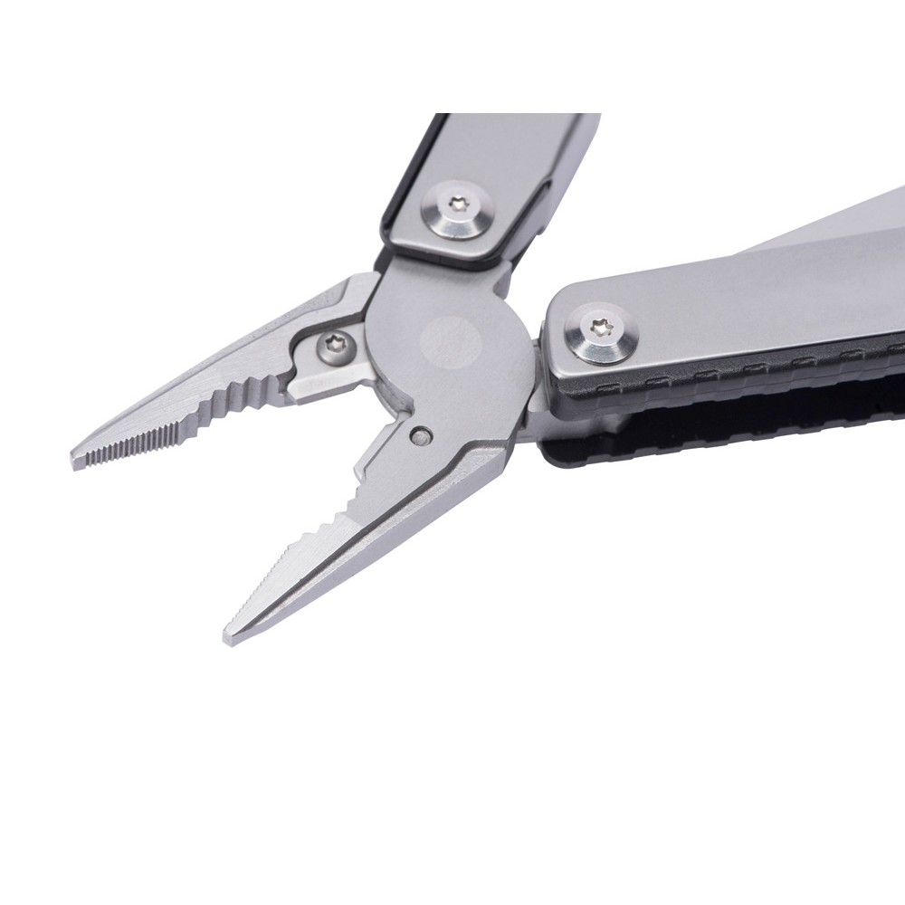 Складной нож Scopus от roq выполнен в ассиметричном необычном дизайне, в его составе — среднего размера нож, пассатижи, плоская и крестовая отвертки (биты), шестигранный ключ 5 мм.