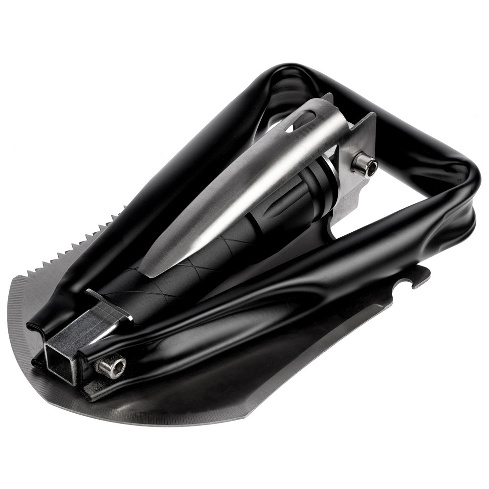 Лопата с V-образным острием легко врезается в почву. Треугольная ручка позволяет удерживать инструмент в любом удобном положении, экономя силы. А пила с разнонаправленными зубьями быстро и ровно пилит при каждом движении.
