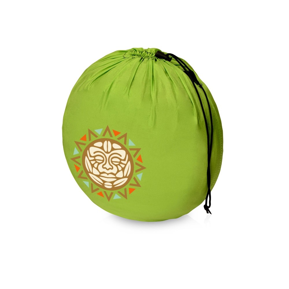 Гамак легко закрепляется на деревьях или каких-либо опорах, с помощью карабинов и веревок, которые идут в комплекте. Легко складывается в индивидуальный мешок, на котором отлично будет смотреть логотип или корпоративный слоган.