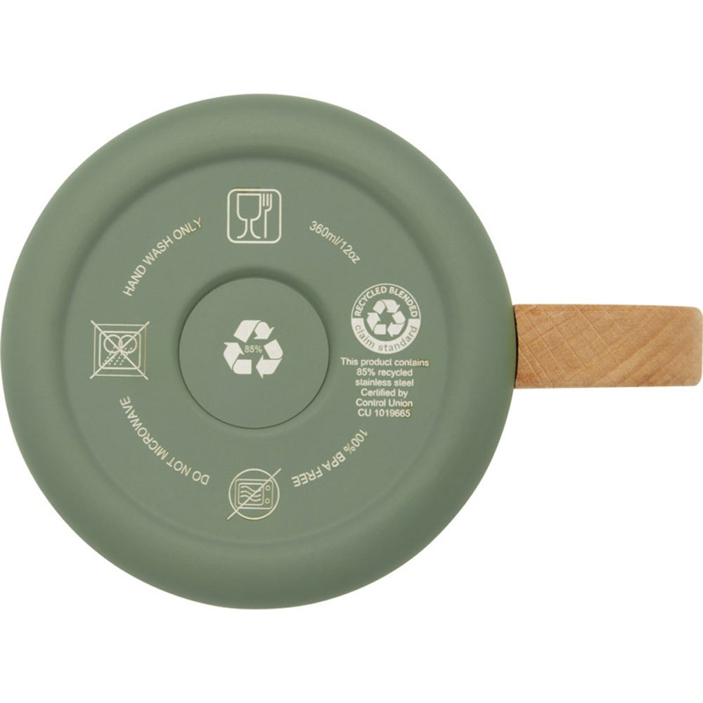 Кружка Bjorn изготовлена из переработанной нержавеющей стали, сертифицированной по стандарту RCS, а ручка изготовлена из древесины бука, полученной из ответственных источников. Медная вакуумная изоляция в кружке помогает поддерживать идеальную температуру напитков в течение длительного периода времени. Эта кружка является отличной альтернативой обычным кружкам и предназначена для предотвращения передачи тепла наружу. Протестировано и одобрено согласно немецкому законодательству о безопасности пищевых продуктов (LFGB) и проверено на содержание фталатов согласно нормам REACH. Емкость: 360 мл. Не содержит БФА.