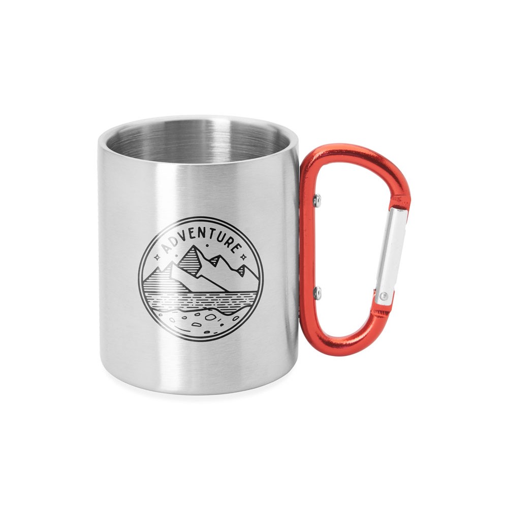 Кружка GUAYA с ручкой карабином, 230 мл, серебристый/красный