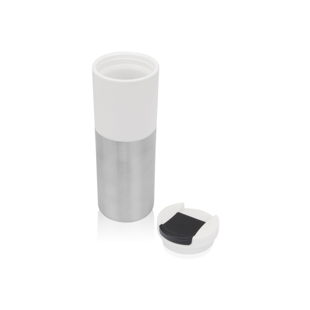 Цвет товара плед- бело-черный, термокружка- белый/серебристый