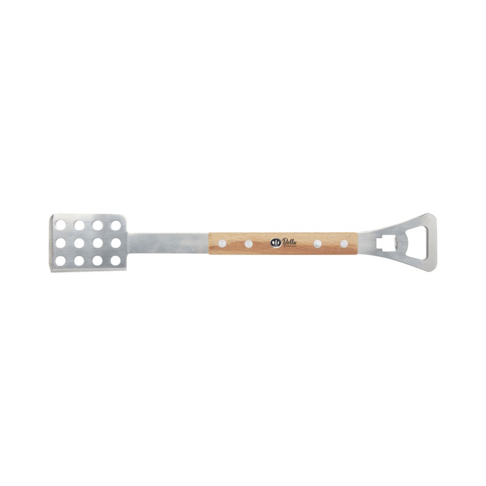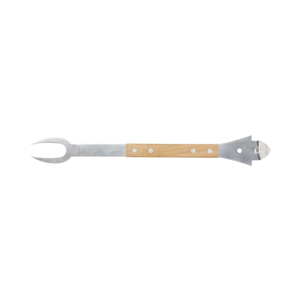 Этот удобный набор инструментов для барбекю 4-в-1 включает в себя лопатку, вилку, консервный нож и открывалку для бутылок — все они изготовлены из дуба и нержавеющей стали, сертифицированной RCS. Удобство и комфорт этого инструмента делают его идеальным подарком для любого любителя барбекю.