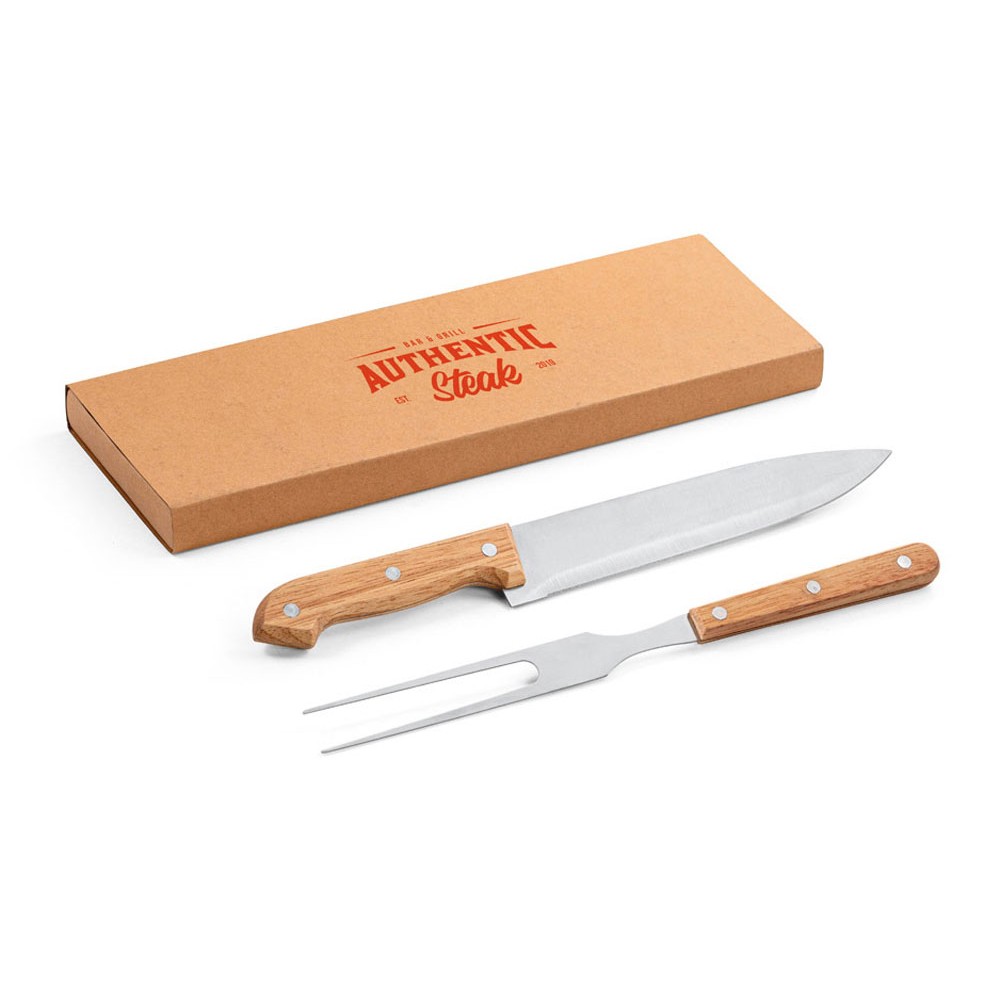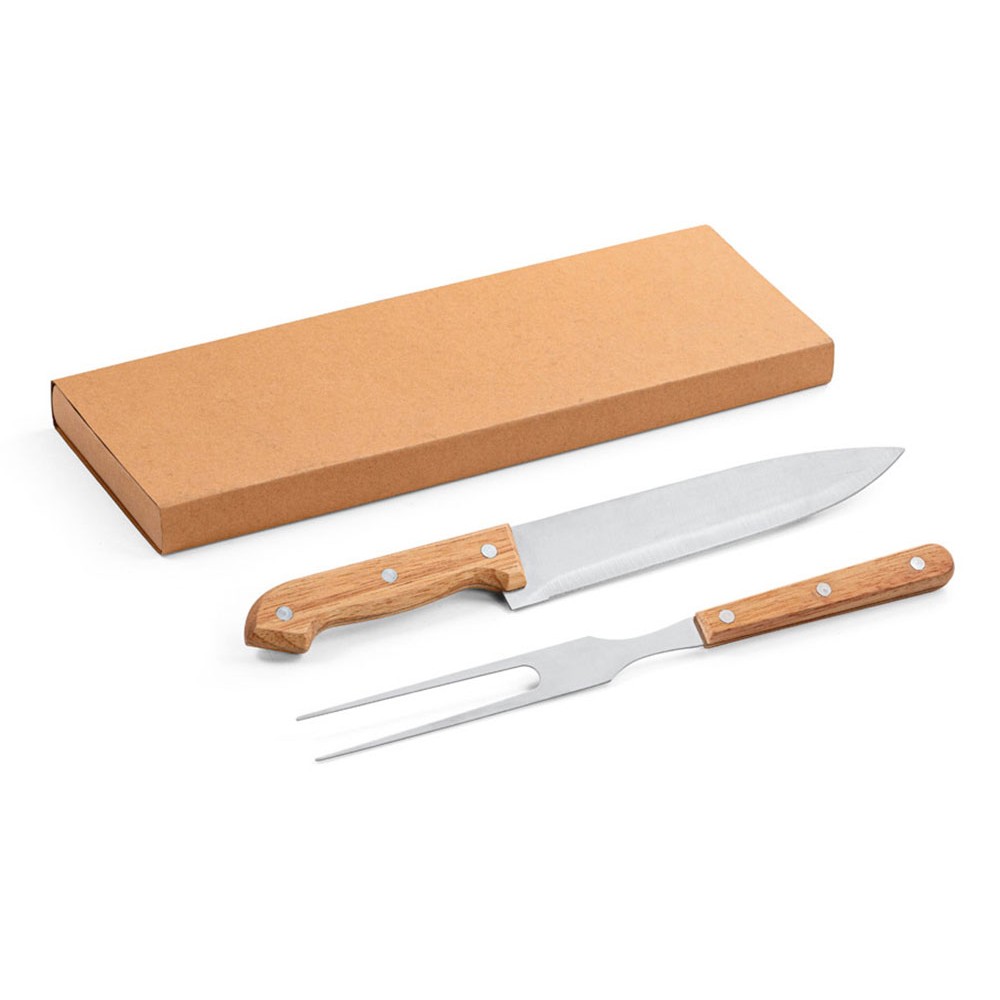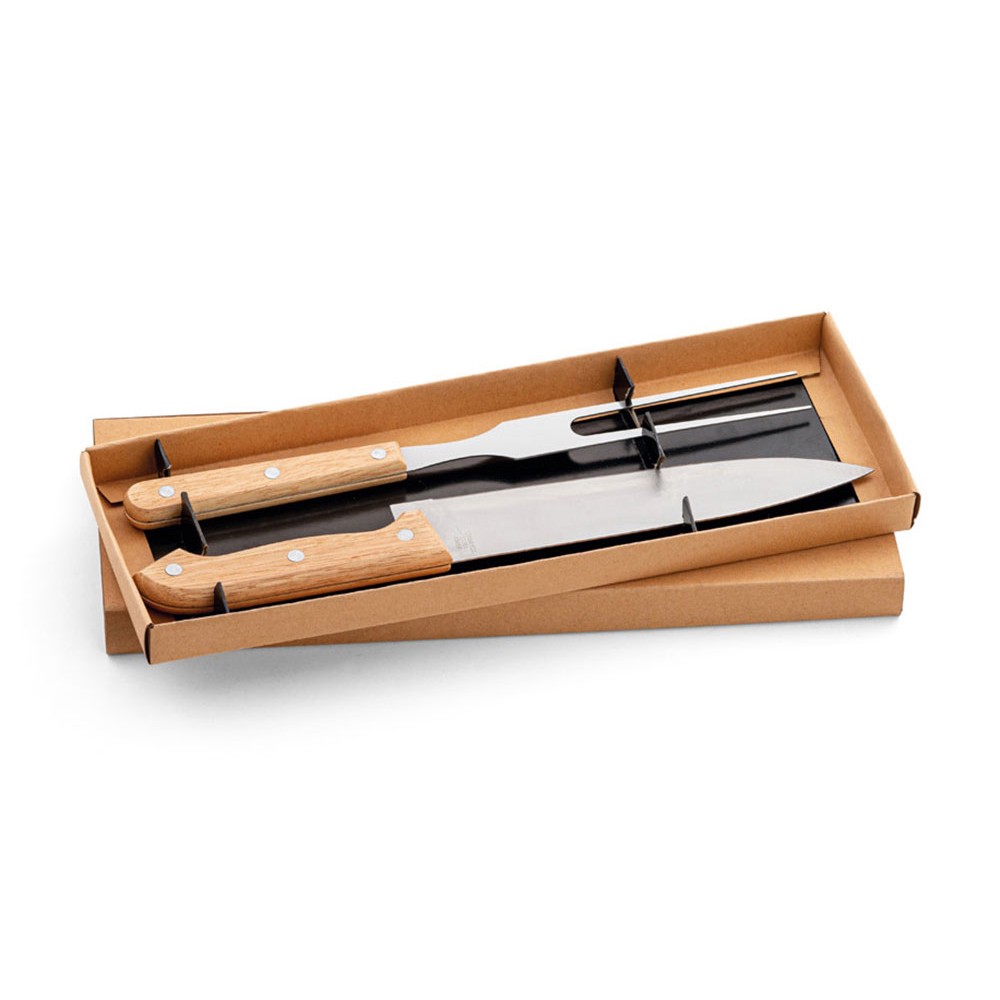 Набор из 2 предметов для барбекю из бамбука и нержавеющей стали.