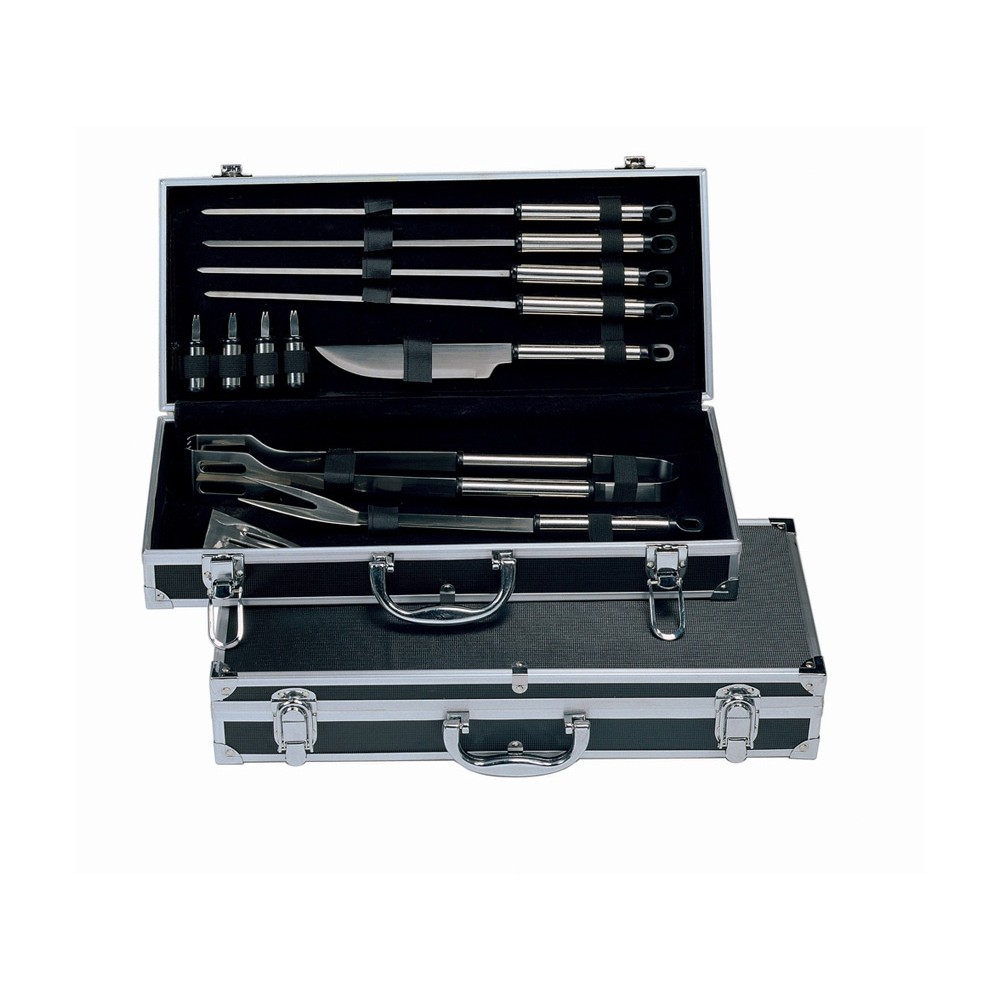 Вес1641 Комплектность4 шампура, 4 шпажки для снятия шашлыка, нож, щипцы, вилка и лопатка Материал товаракейс- алюминий, аксессуары- нержавеющая сталь