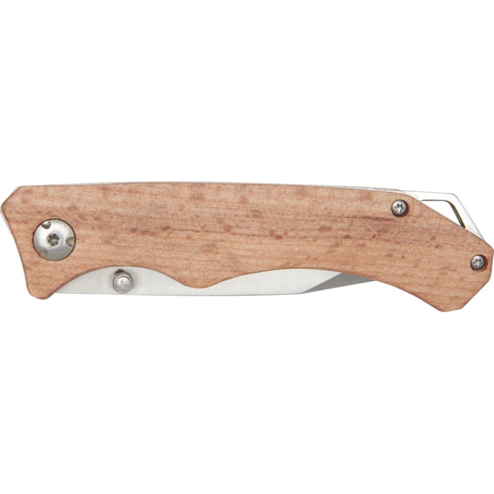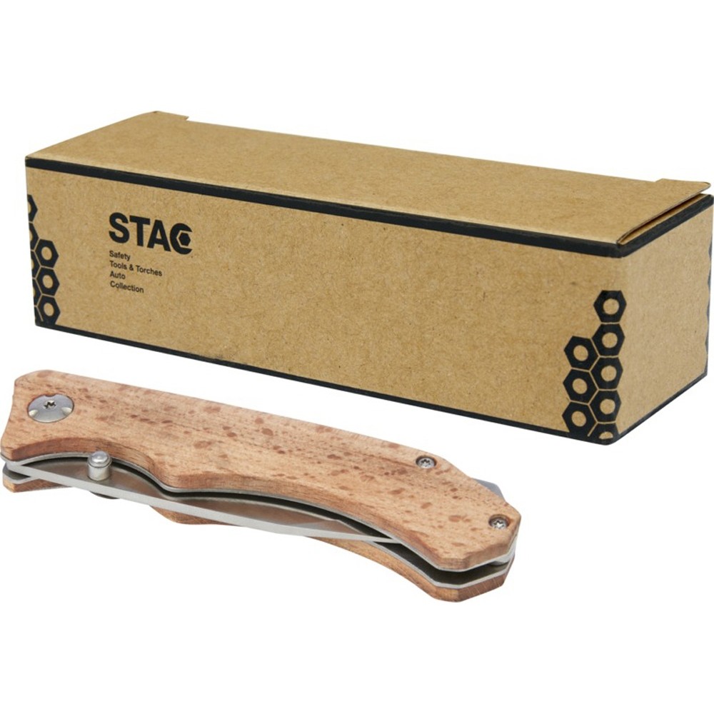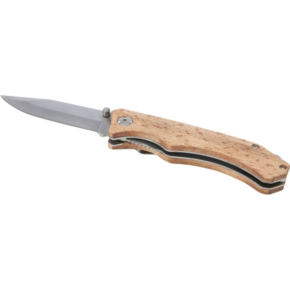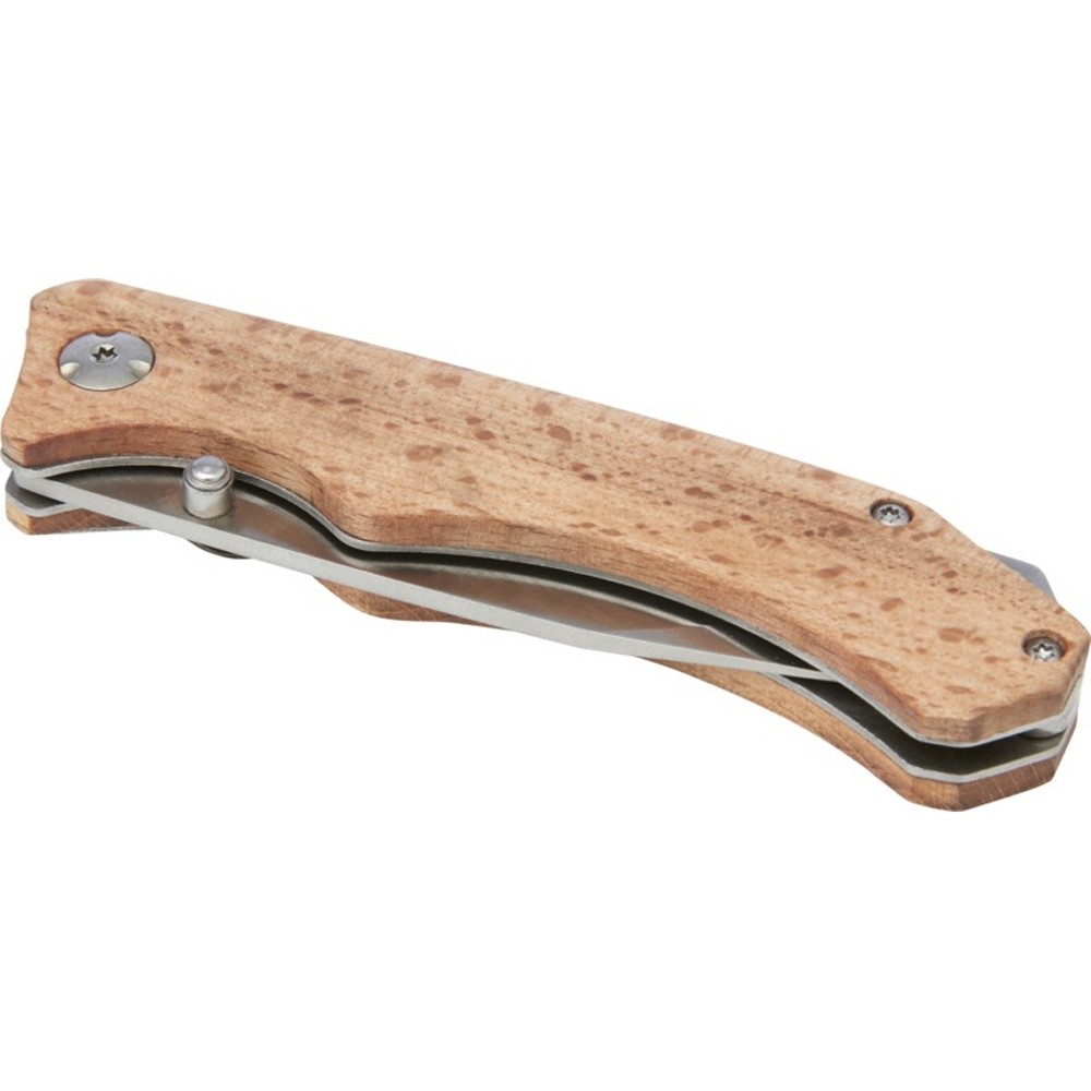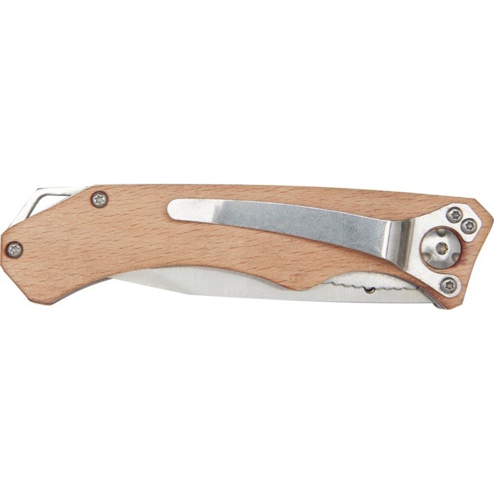 Прочный, надежный и компактный карманный нож из качественной нержавеющей стали с ручками из буковой древесины. Обязательный аксессуар для любого скаута, мастера и других любителей выживания или активного отдыха. Используемая буковая древесина поступает от надежных поставщиков, соблюдающих все экологические и социальные нормы. Нож поставляется с предохранительным замком и зажимом для ремня, размер в открытом состоянии составляет 19 x 2 x 2,5 см, а в закрытом — 11 x 2 x 2,5 см. Поставляется с инструкцией по эксплуатации и в подарочной коробке из переработанного картона размером 14 x 4 x 3,5 см. В качестве экологически рационального варианта печати рекомендуется лазерная гравировка.
