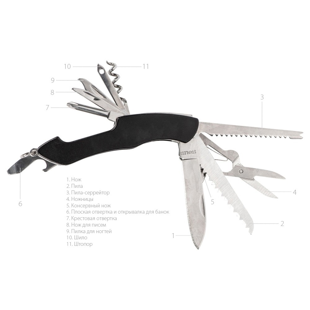 Мультитул-складной нож Demi 11-в-1, серебристый/черный 799 ₽