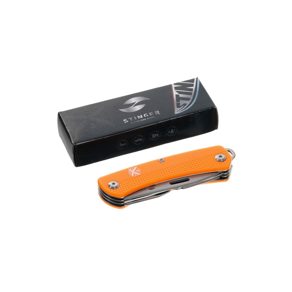 Нож перочинный Stinger, 103 мм, 10 функций, материал рукояти: АБС-пластик (оранжевый)