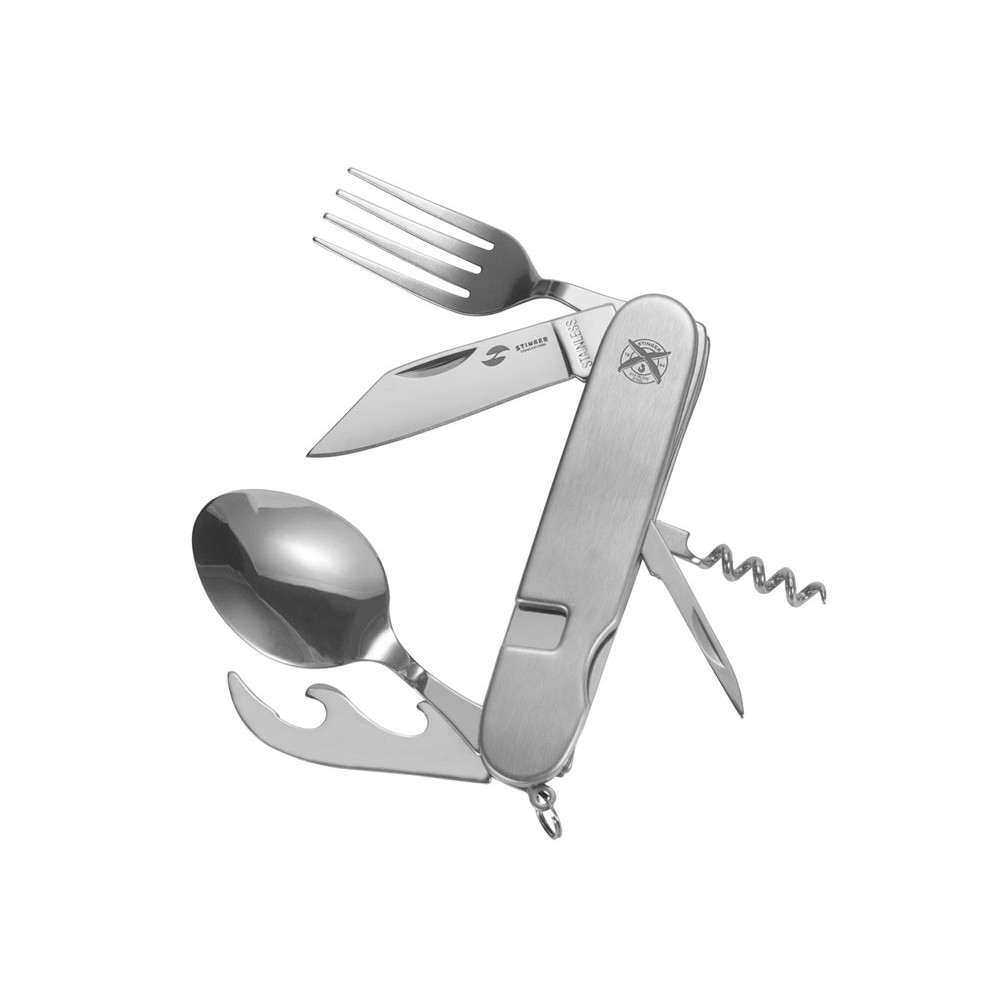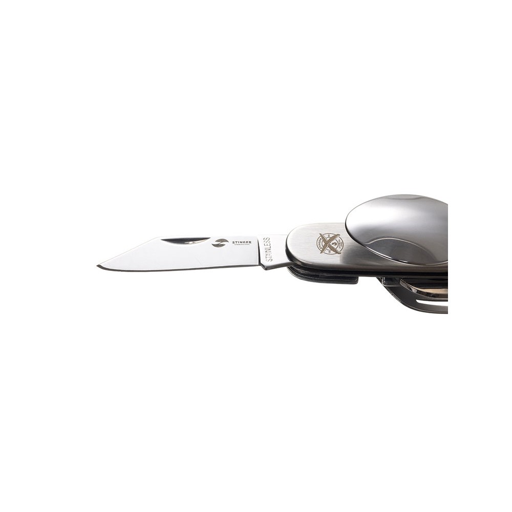 Нож перочинный Stinger, 109 мм, 8 функций, материал рукояти: нержавеющая сталь (серебристый)