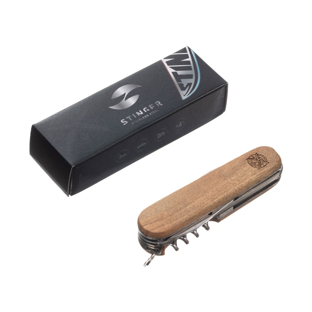 • Нож перочинный Stinger, 90 мм, 11 функций, материал рукояти: древесина сапеле