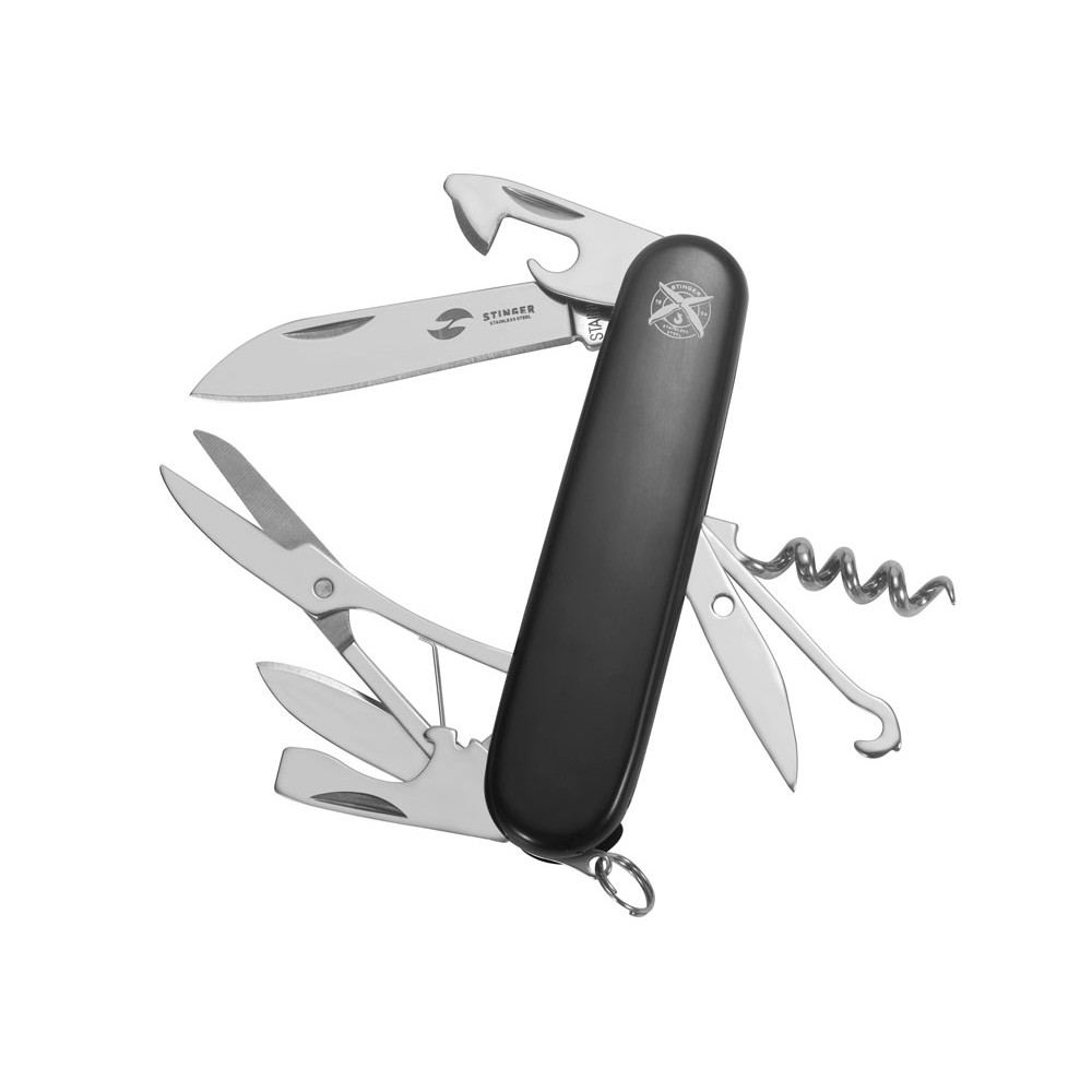 • Нож перочинный Stinger, 90 мм, 13 функций, материал рукояти: АБС-пластик (чёрный)