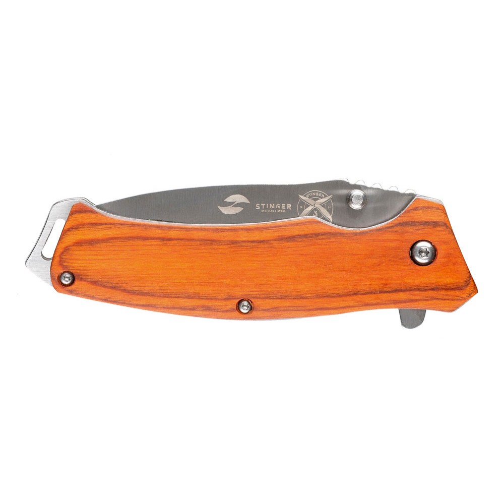 Нож складной Stinger, 110 мм, (серебристый), материал рукояти: дерево/сталь (коричневый)