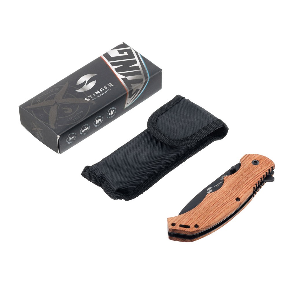 • Нож складной Stinger, 120 мм, (чёрный), материал рукояти: дерево/сталь (коричневый)
