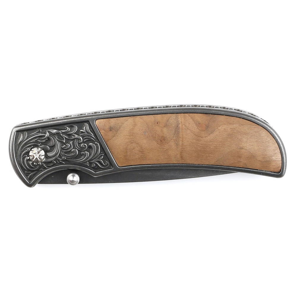 Нож складной Stinger, 71 мм, (чёрный), материал рукояти: сталь/дерево (коричневый)