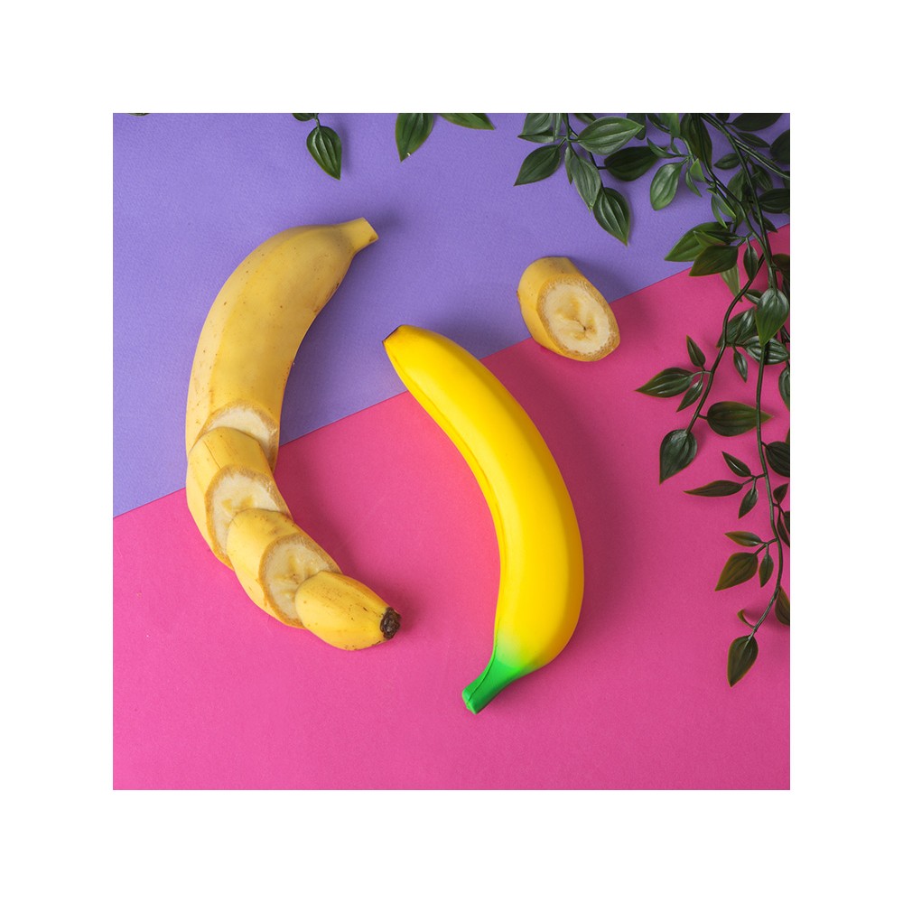Фруктовый антистресс поднимет настроение не только детям, но и их родителям. Мягкий, но при этом плотный материал упруго мнется в руке, не повреждаясь, благодаря чему изделию обеспечен длительный срок службы. Банан выполнен весьма достоверно: верхняя часть окрашена в градиент зеленого, который плавно переходит в желтый, словно банан только что созрел и был сорван с ветки, а нижняя его часть прокрашена в коричневый, как у настоящего. На поверхность антистресса можно нанести изображение методом гравировки.
