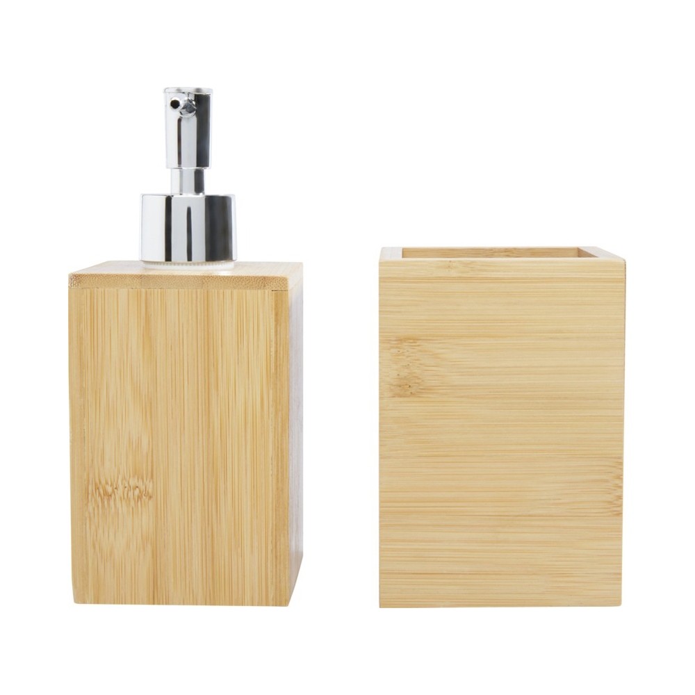 | Вес499 | Комплектностьмыльница с ситечком 11 x 8,2 x 2,4 см, дозатор для мыла или лосьона 7,1 x 7,2 x 16,8 см, держатель для зубных щеток 8 x 8 x 11,5 см | Материал товарабамбук, пластик PP, цинковый сплав |