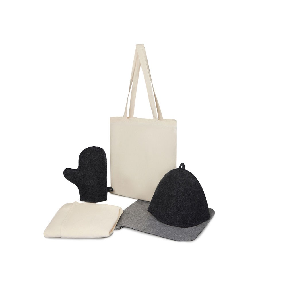 Для настоящего любителя пара — холщовый килт, рукавица, шапка и коврик, упакованные в хлопковый шоппер, создадут настроение и уют в каждой бане.