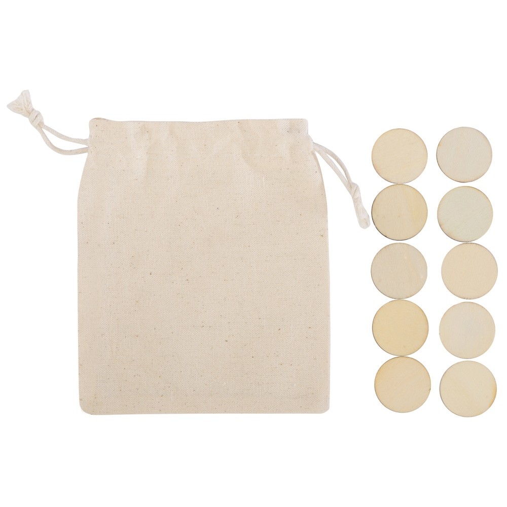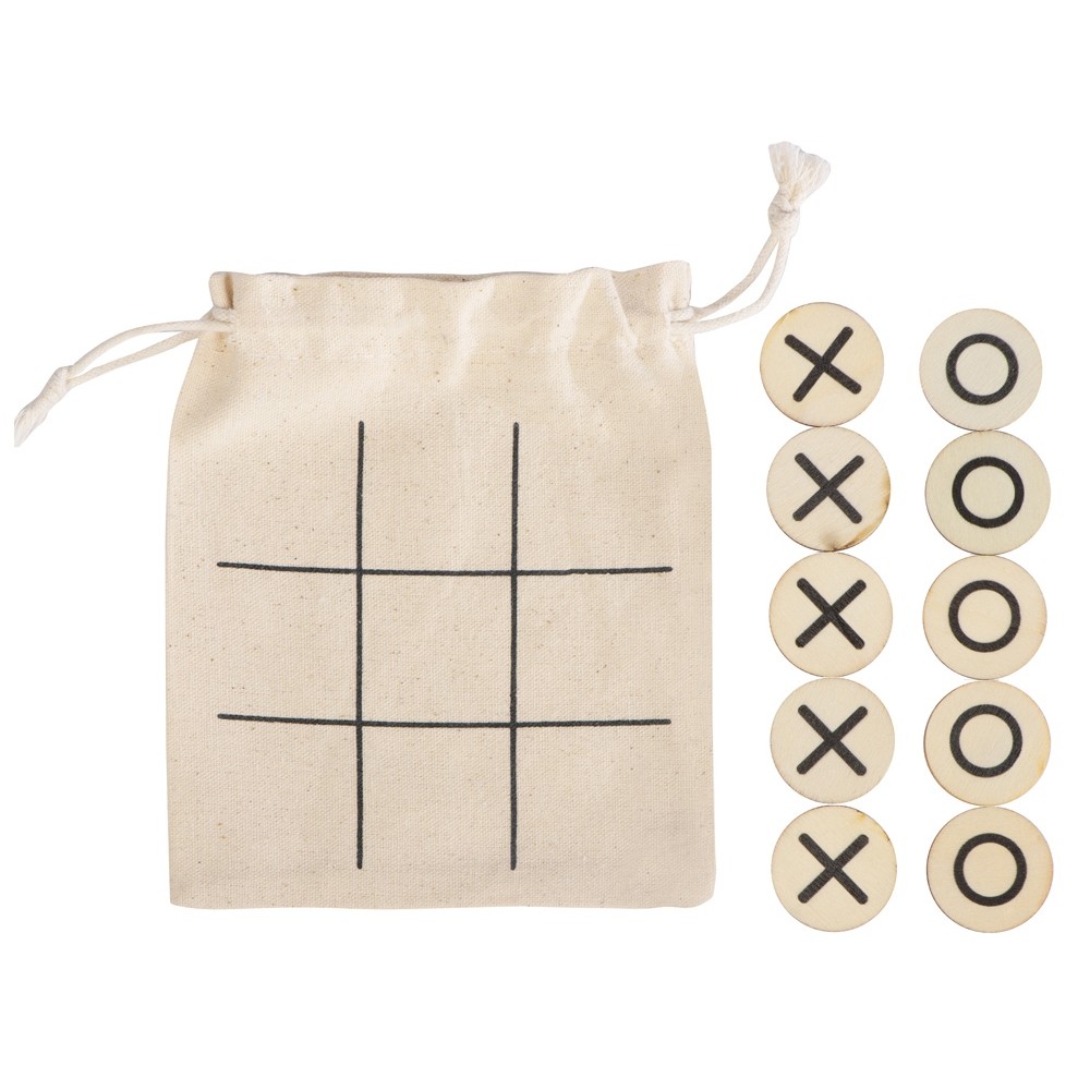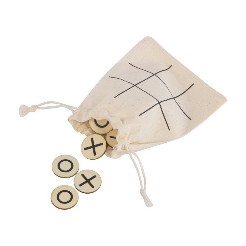 Символы крестиков и ноликов нанесены на небольшие круглые деревянные фишки, а игровым полем служит мешочек, в котором эти фишки хранятся. Благодаря этому игру очень удобно взять с собой, она почти не занимает места и позволит нескучно и с пользой провести время, например, в дороге или на пикнике.